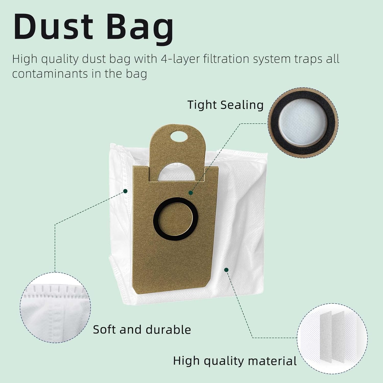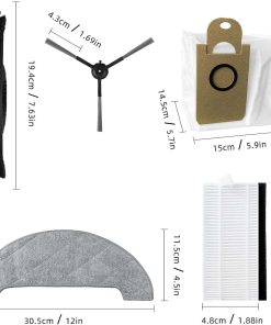 - 🥇 Das Set enthält: 1 Rollenbürste, 6 Seitenbürsten, 4 Hepa-Filter, 2 Wischtücher, 2 Staubbeutel und 1 Reinigungswerkzeug.