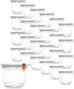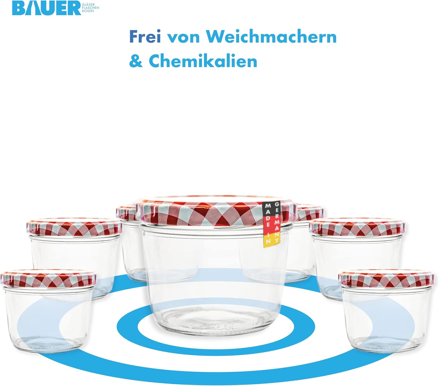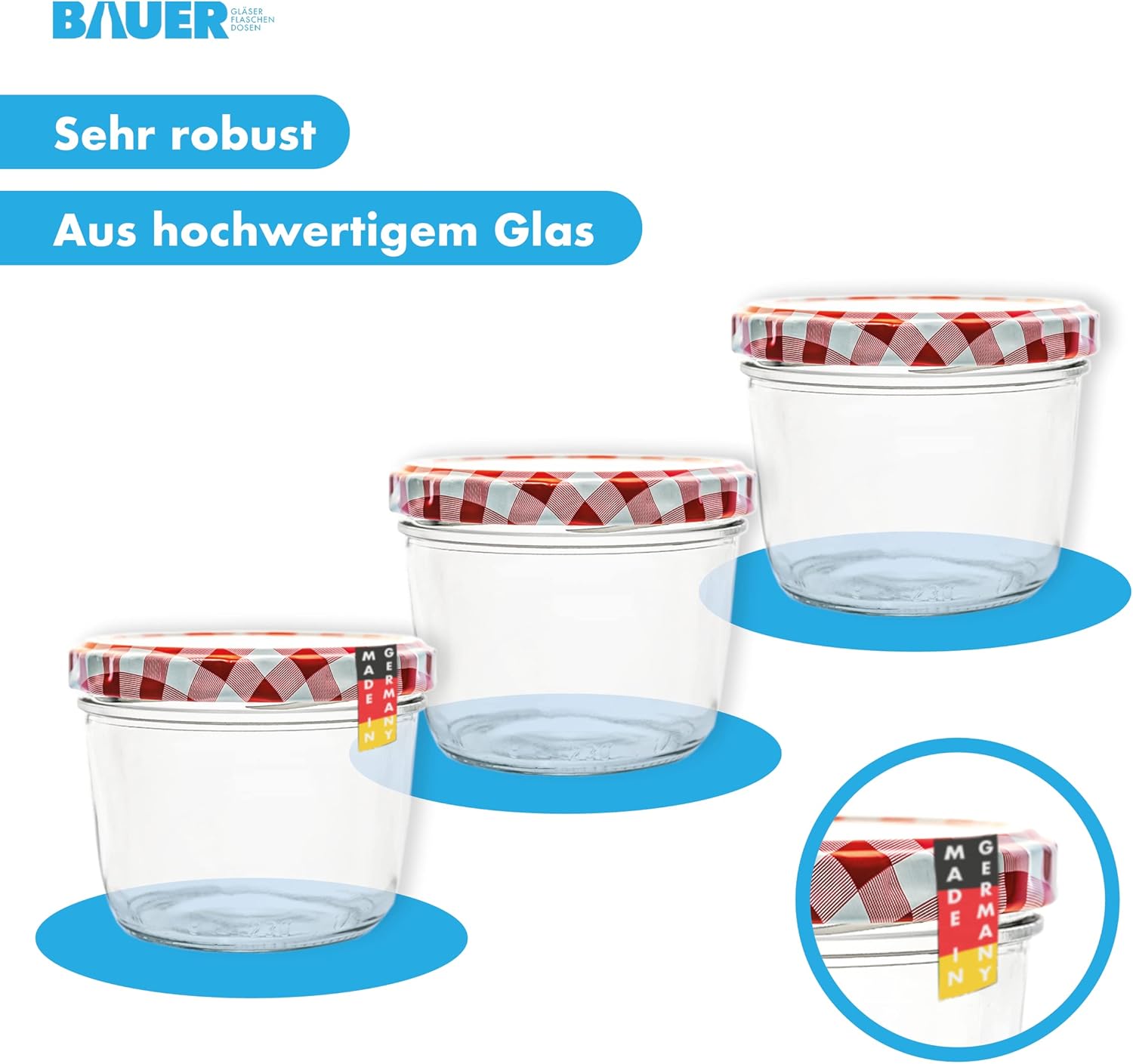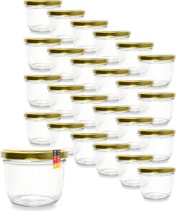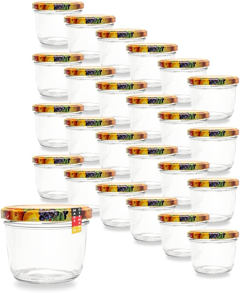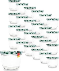 Flaschenbauer 24er Set Premium Sturzgläser 230 ml – Vielseitige Marmeladengläser & Einmachgläser mit farbigem Twist-Off-Deckel, inklusive Etiketten. Ideal für Suppen, Dips, Tee, Kräuter (Rot-Kariert)