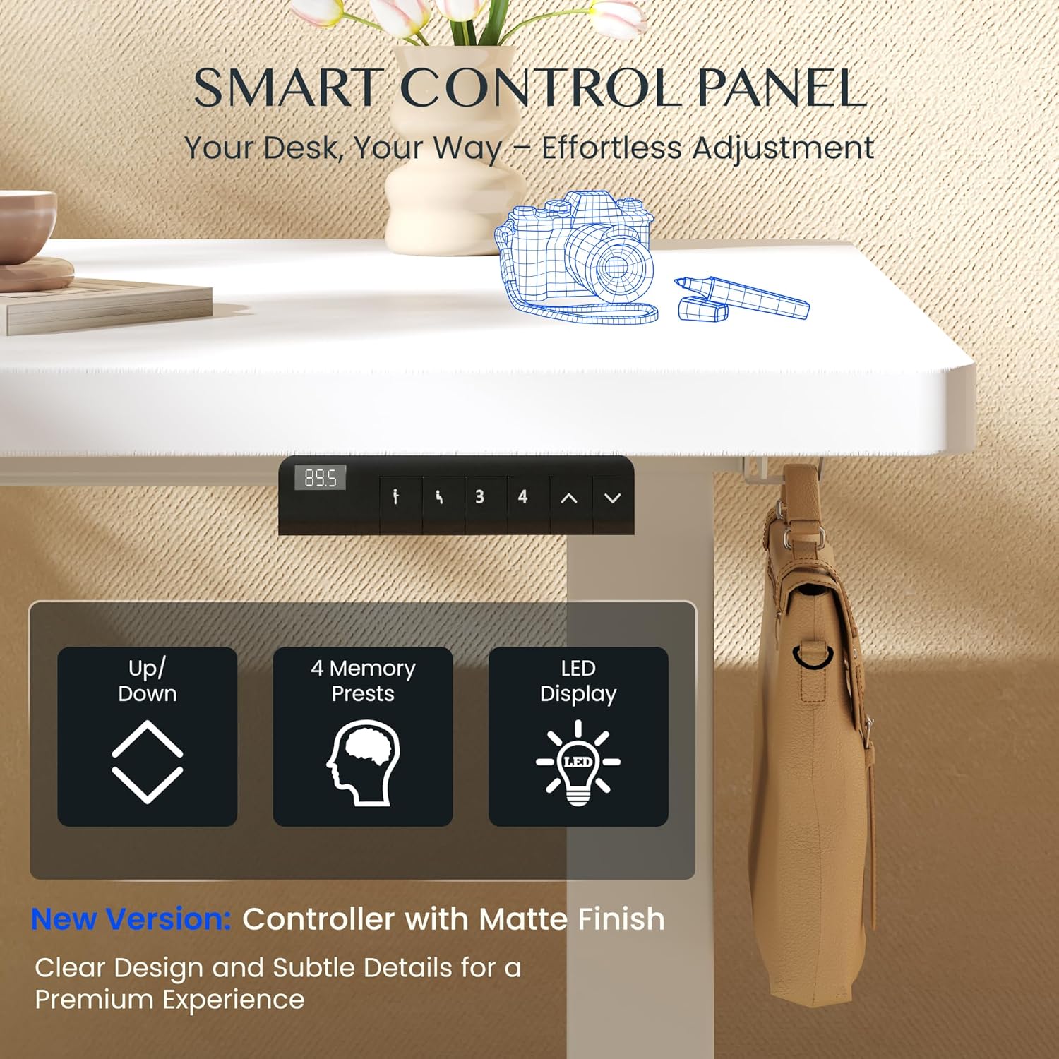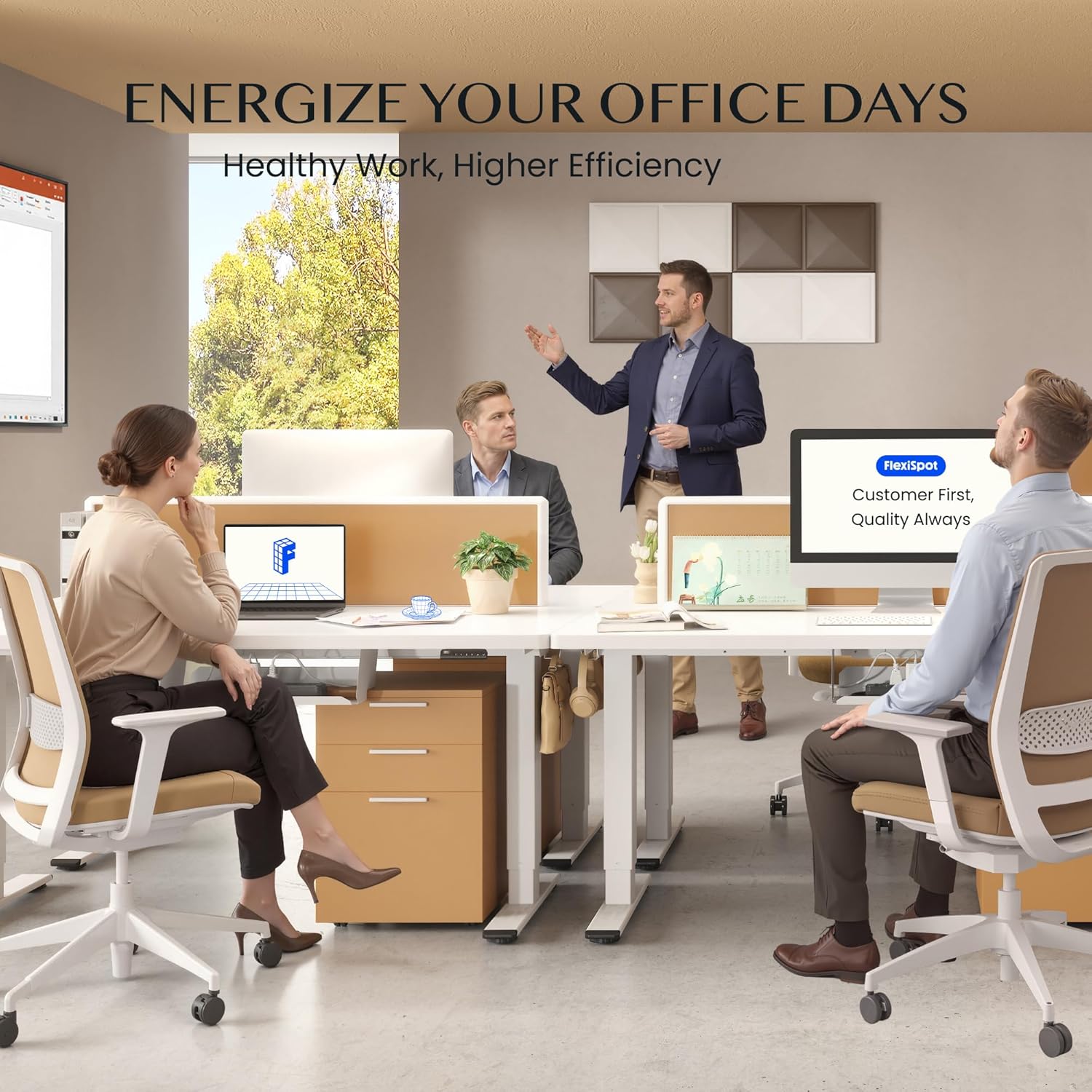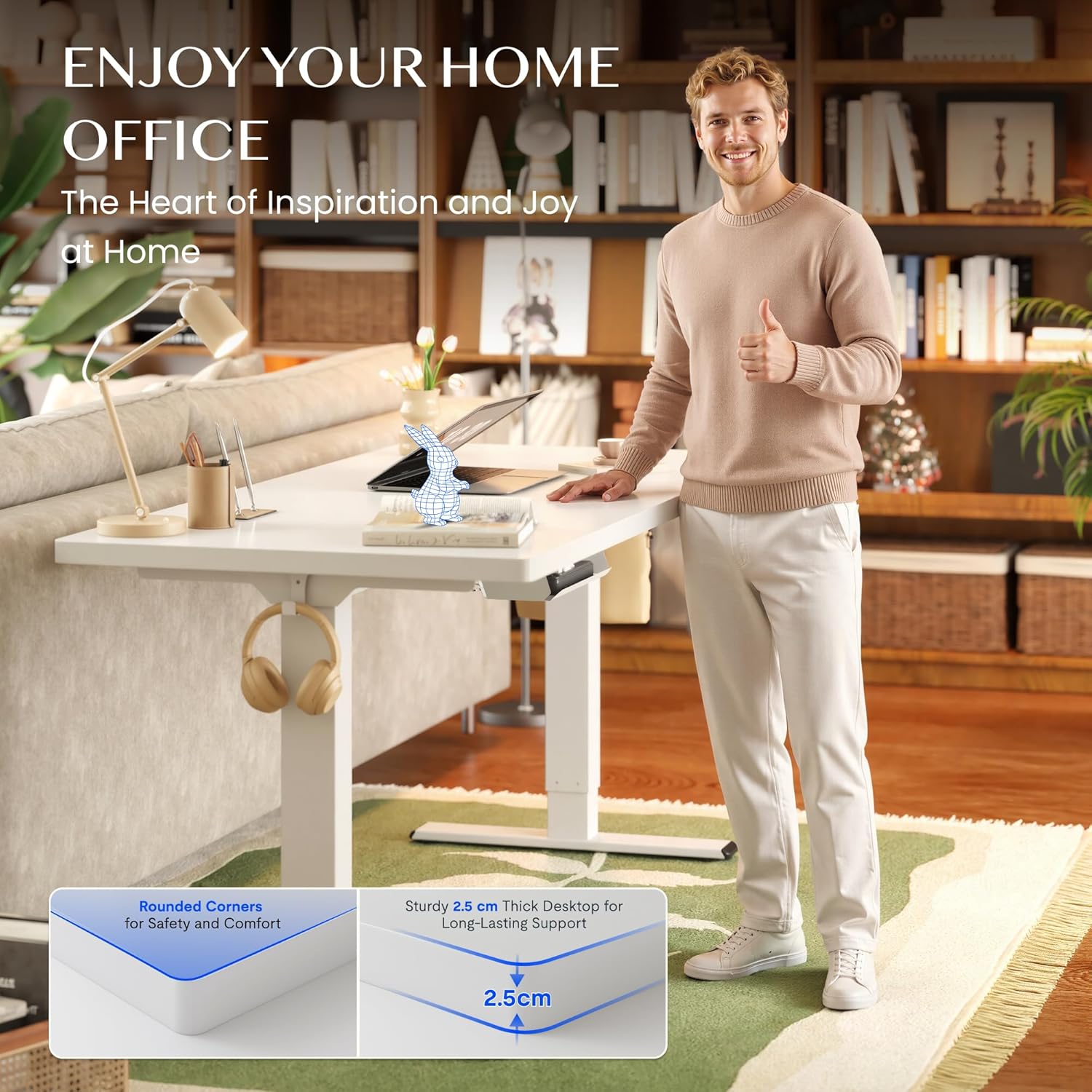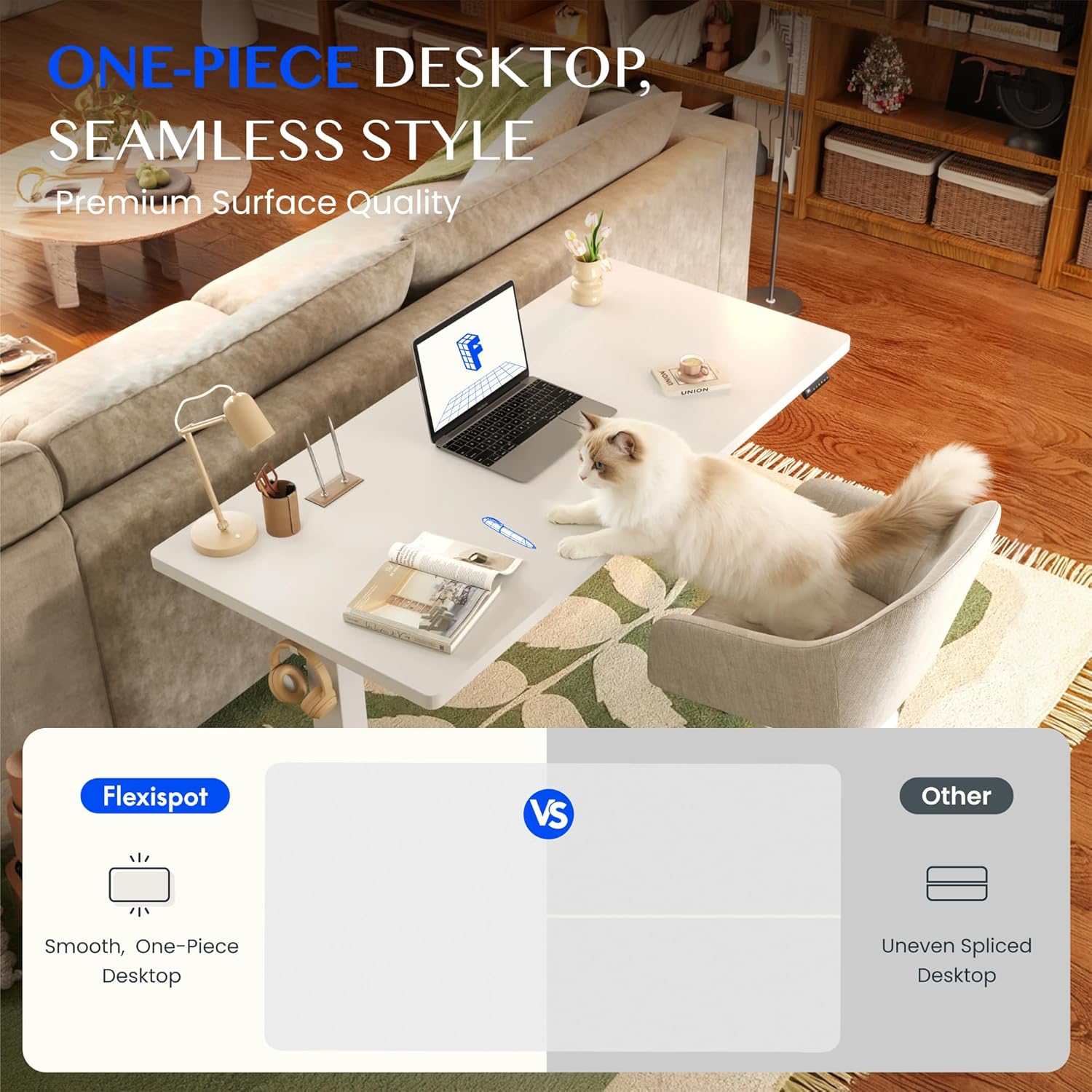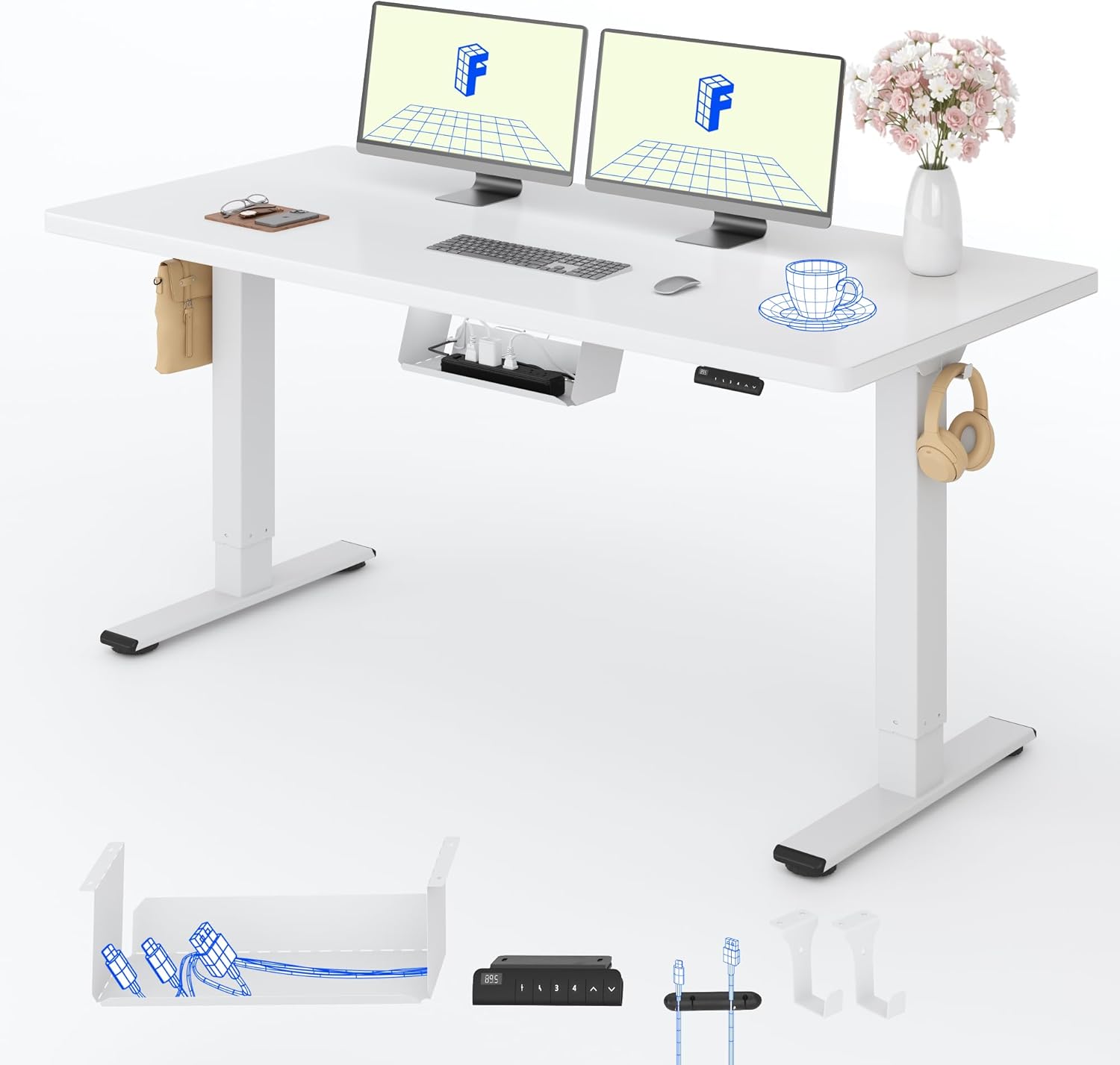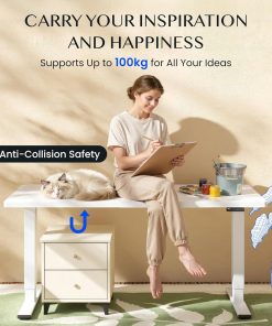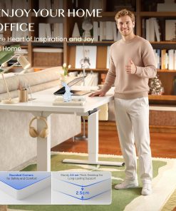 FlexiSpot Höhenverstellbarer Schreibtisch mit 2 Motoren & 25MM einteiliger Tischplatte,ergonomischer Bürotisch – 160 x 80 cm Weiß, weißes Gestell