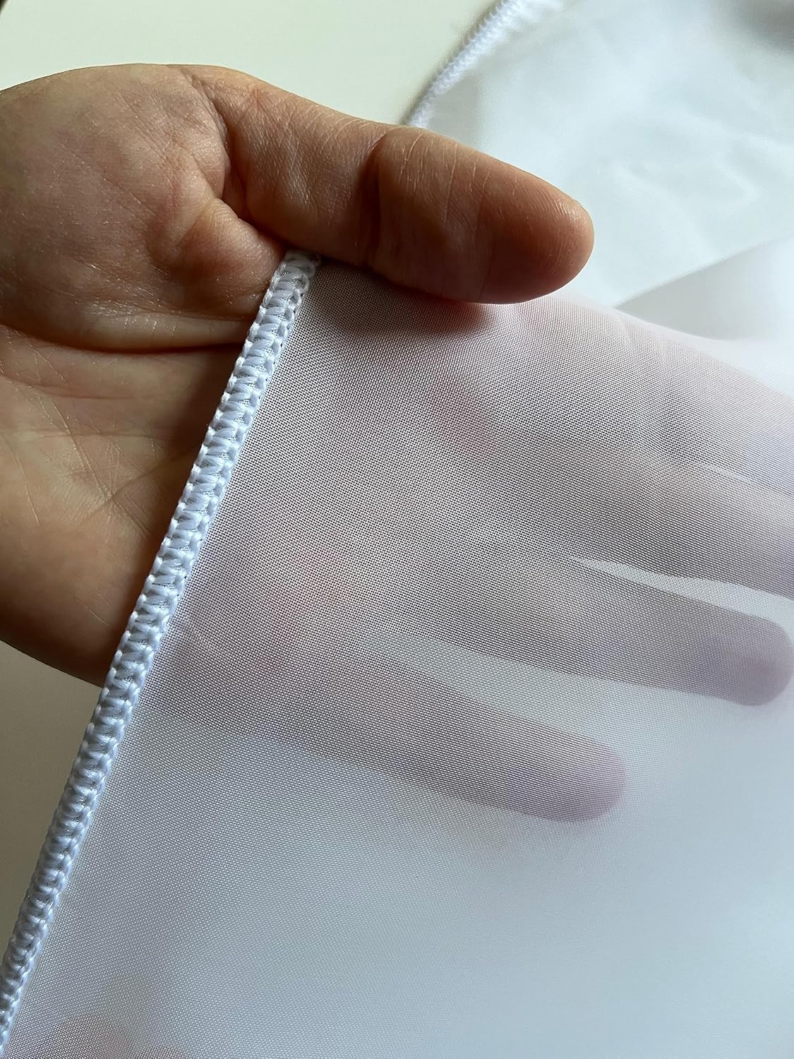 Die Ware wurde wie angekündigt pünktlich geliefert. Habe alles gerichtet und aufgehängt; fällt sehr gut und ist durch das Bleiband unten sehr dicht, man kann nicht hindurchsehen. Ich habe die dreifache Breite genommen; wer es noch dichter will, sollte vierfache nehmen. Es ist hell in meinem Wohnzimmer wie gewünscht. Verarbeitung ist gut und der Preis in Ordnung.