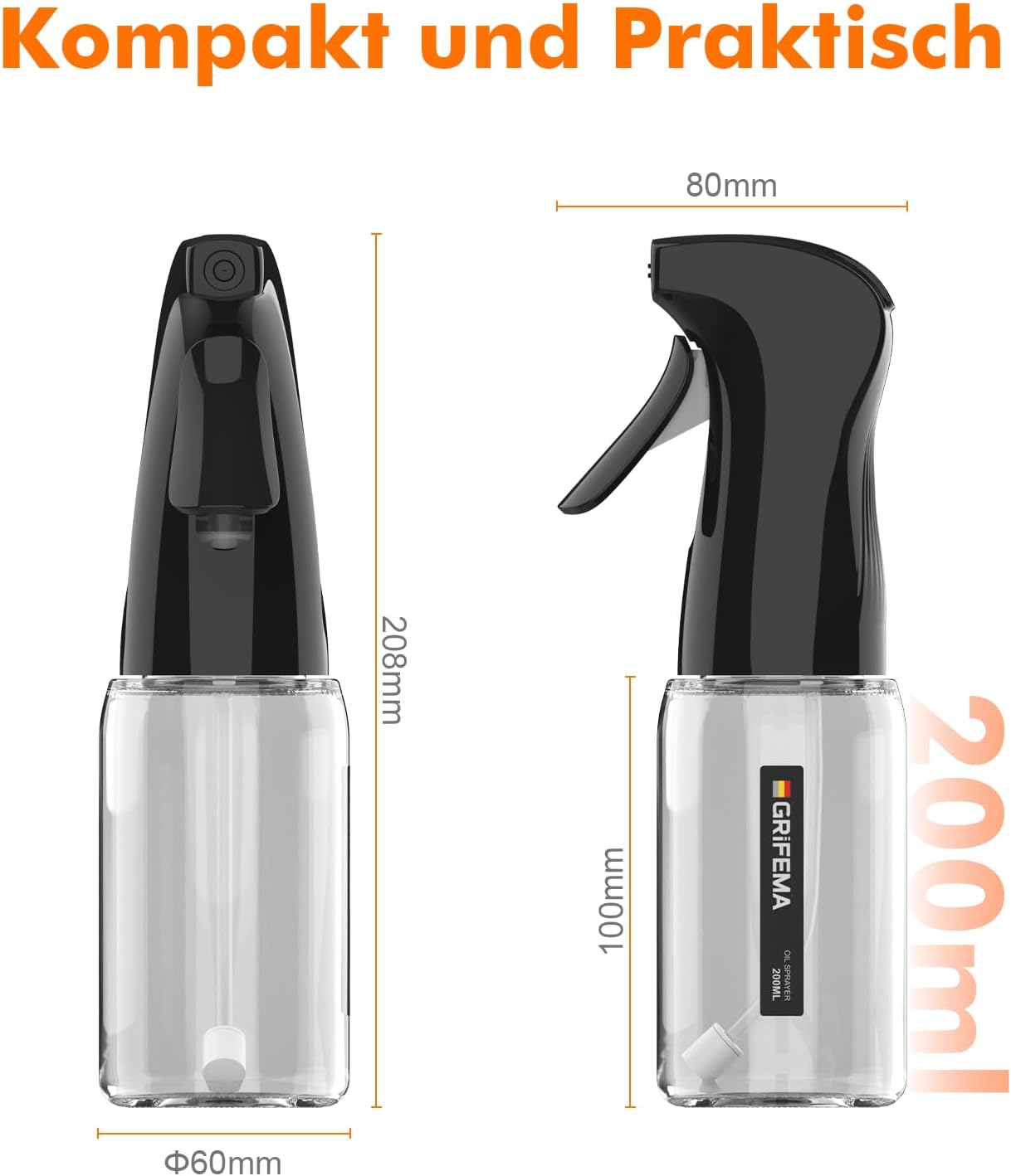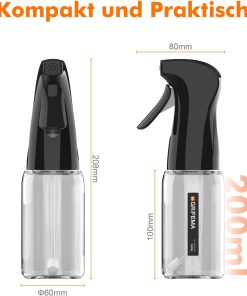 - Materialeigenschaften & Reinigung – Der 200ml Behälter besteht aus lebensmittelechtem, BPA-freiem Glas. Die Glasflasche ist spülmaschinenfest, während der Sprühkopf durch Durchpumpen mit warmem Wasser von Rückständen befreit werden kann