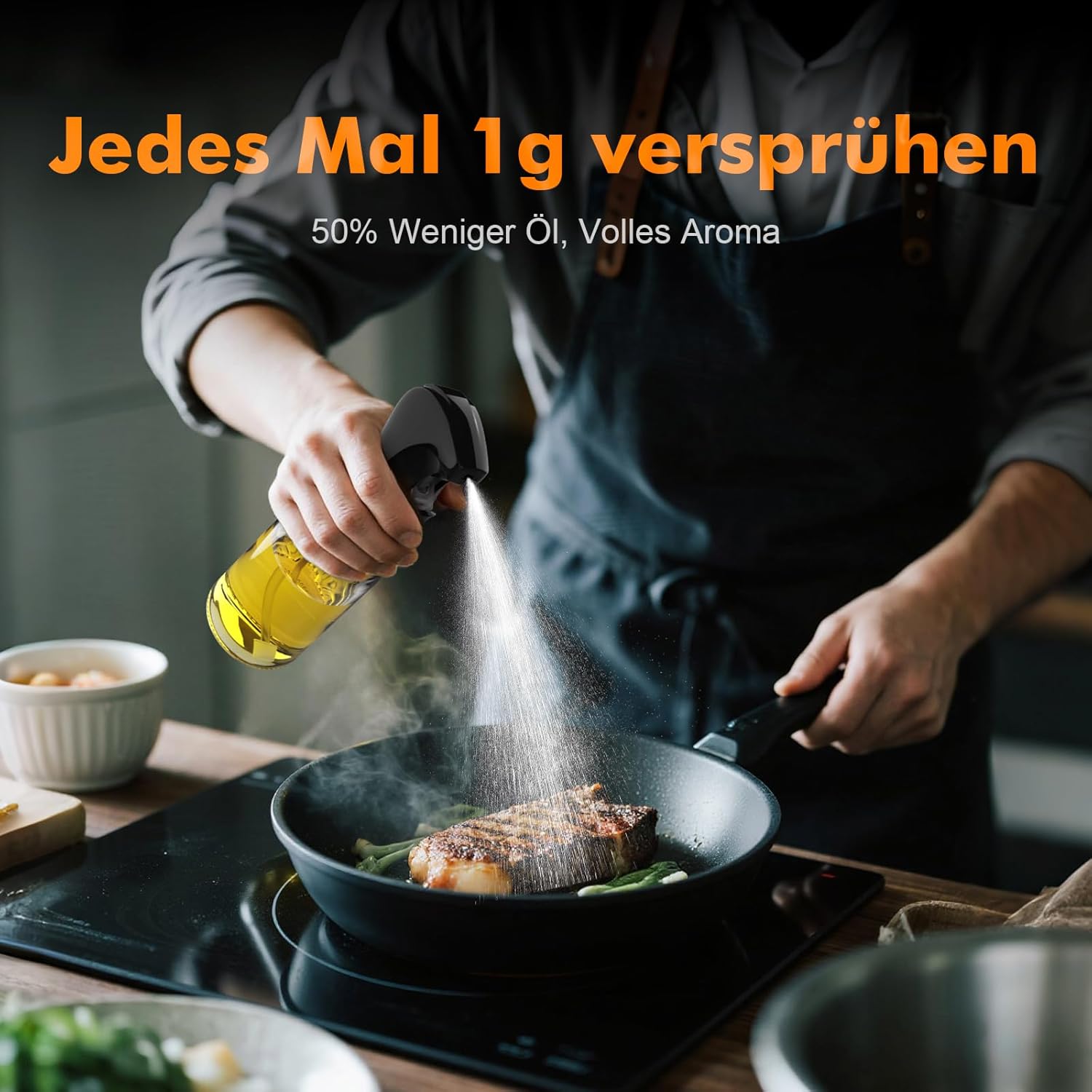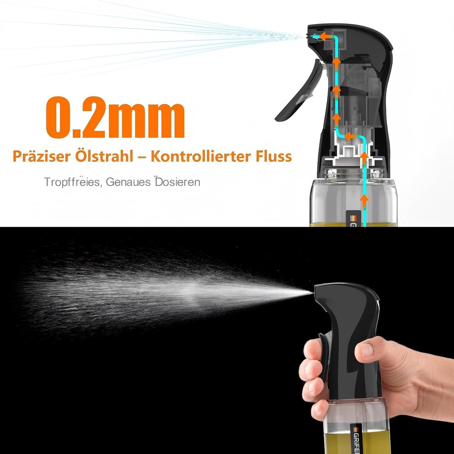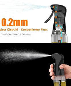- Einsatzbereich Heißluftfritteuse & Grill – Konzipiert für Speisen, die eine direkte Ölbenetzung benötigen. Der kräftige Strahl erreicht das Grillgut direkt und unterstützt die Haftung von Gewürzen bei der Zubereitung im Air Fryer oder in der Pfanne