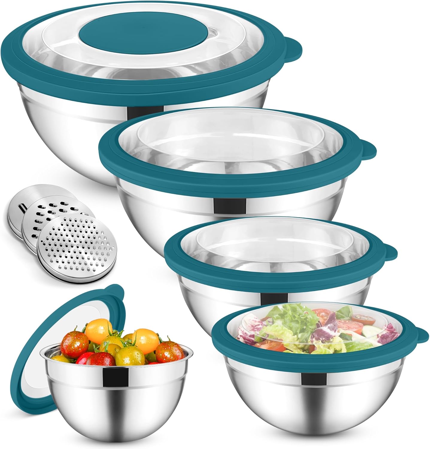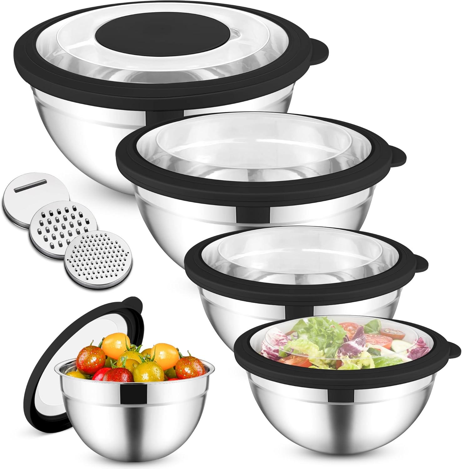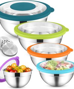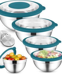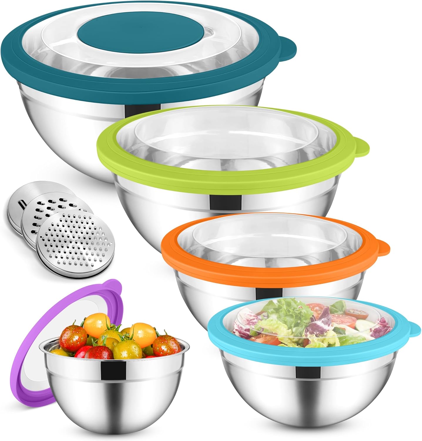 - 5 Größen & Vielseitigkeit – Dieses praktische Rührschüsselset enthält 3 Schüsseln in verschiedenen Größen (4,5L/2,8L/1,5L/1,2L/0,7L), 5 durchsichtige Sichtdeckel und 3 Reibeaufsätzen, um die unterschiedlichen Bedürfnisse beim Kochen/Mahlzeitenzubereiten/Servieren/Backen/Aufbewahren zu erfüllen, Multifunktionales küchen zubehör zum Mischen von Zutaten/Salaten/Butter, Marinieren von Fleisch, Waschen von Gemüse und Obst, Transportieren von Lebensmitteln beim Campen/Picknicken, Ideales Geschenk zur Einweihung, zum Geburtstag, zur Hochzeit, zu Weihnachten und zu anderen Anlässen