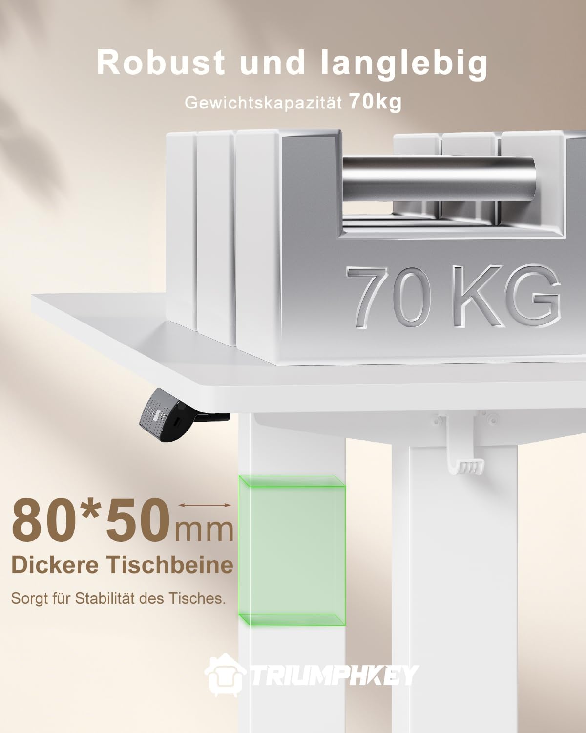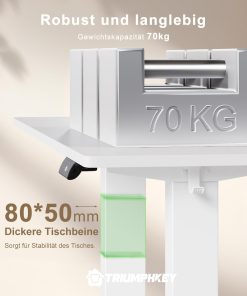 - Certified quality: the height-adjustable table frame is highly qualified. Wear-resistant, heat-resistant and easy to clean. Powerful quiet motor (<50 dB) with a load capacity of 70 kg. The height-adjustable work table is tested for functionality and does not wobble when climbing.