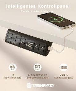 - 3 adjustable memory functions: the large electrically height-adjustable desk raises and lowers between 72 and 116 cm. You can adjust 3 commonly used heights with a single click to meet the needs and even your family members. A USB charging port for charging mobile phones and electronic devices. The warning function for sedentary/long sitting is also a useful function.