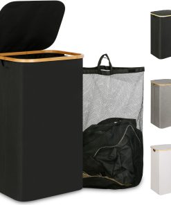 Der Wäschekorb ist riesig und sehr praktisch: die zwei Fächer helfen beim Sortieren, der stabile Bambusgriff liegt gut in der Hand und der Deckel hält alles ordentlich versteckt. Sieht schön aus, steht stabil und ist leicht zu tragen – ideal für Waschküche, Schlafzimmer oder Bad. Sehr zufrieden mit Qualität und Platzangebot.