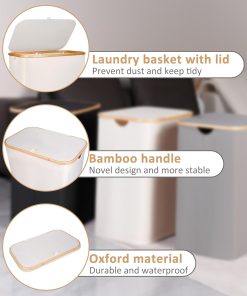 - Laundry basket with lid and bamboo handle: The laundry basket is designed with Oxford fabric and bamboo handles. At the same time, there are 4 removable support rods for attaching the laundry basket, making the laundry basket more stable and upright, and you can easily assemble or fold the laundry basket. The thick linen and bamboo handles are durable and not easy to break, the bamboo handles do not rust, are lightweight and the fabric is breathable and easy to clean.