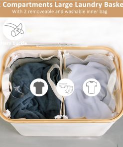 - Extra large laundry basket: The iEGrow laundry basket with 2 compartments measures 22.44 x 14.56 x 27.55 inches (L x W x H) and has a capacity of 150 litres. This foldable basket is very suitable for home use, with super large capacity and double compartments, it can store many garments at the same time, make your home comfortable and tidy and provide more storage space.