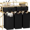 - Removable inner bag: This double laundry basket has 2 removable and washable inner bags, which makes it convenient to distinguish between dark and light clothes or clothes and trousers etc. The inner bag with mesh design is very easy to clean and disassemble, and there is no need to wash the laundry basket frequently. You don't need to move the whole laundry basket when you do laundry, and it is convenient to take clothes out. It is suitable for pregnant women, the elderly and children.