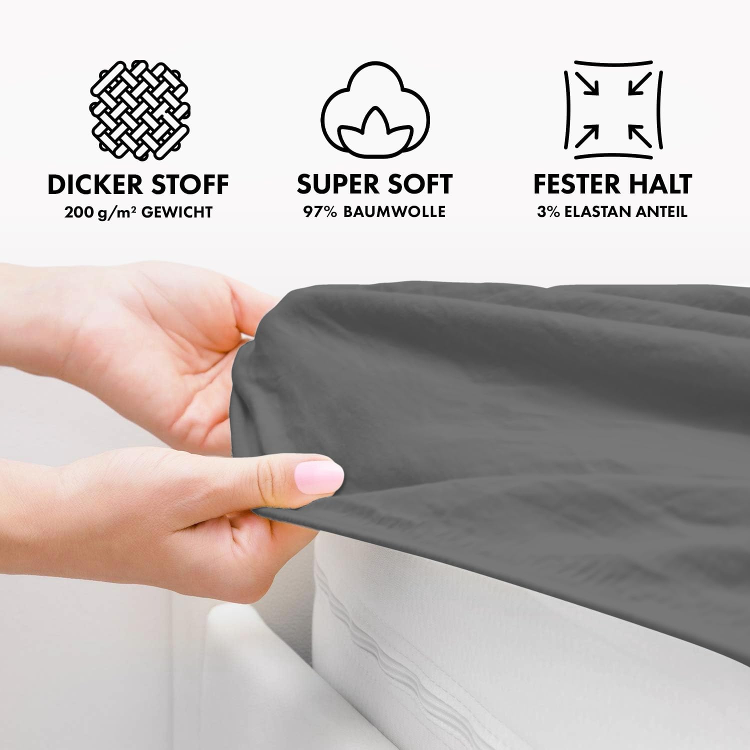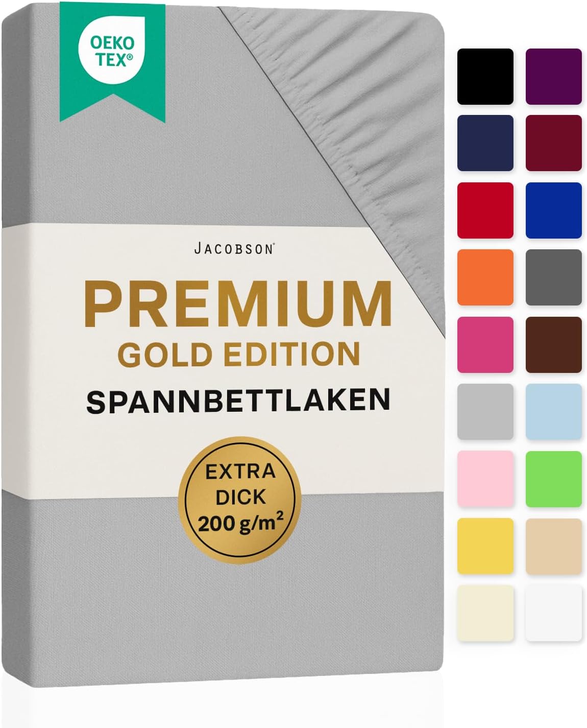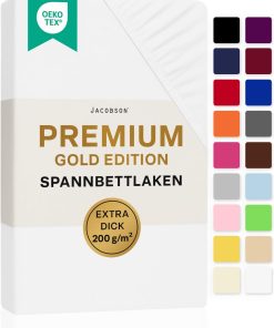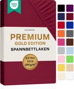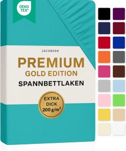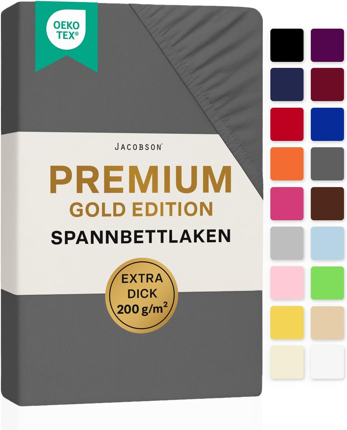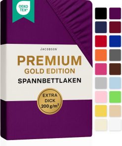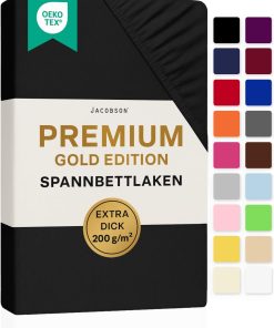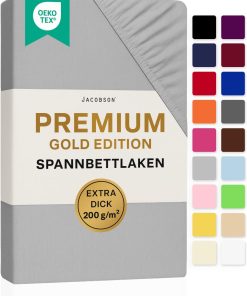 Jacobson Premium Spannbettlaken 200 g/m² Jersey Boxspringbett & Überlänge (XL 90×200-100×220 cm, Anthrazit)