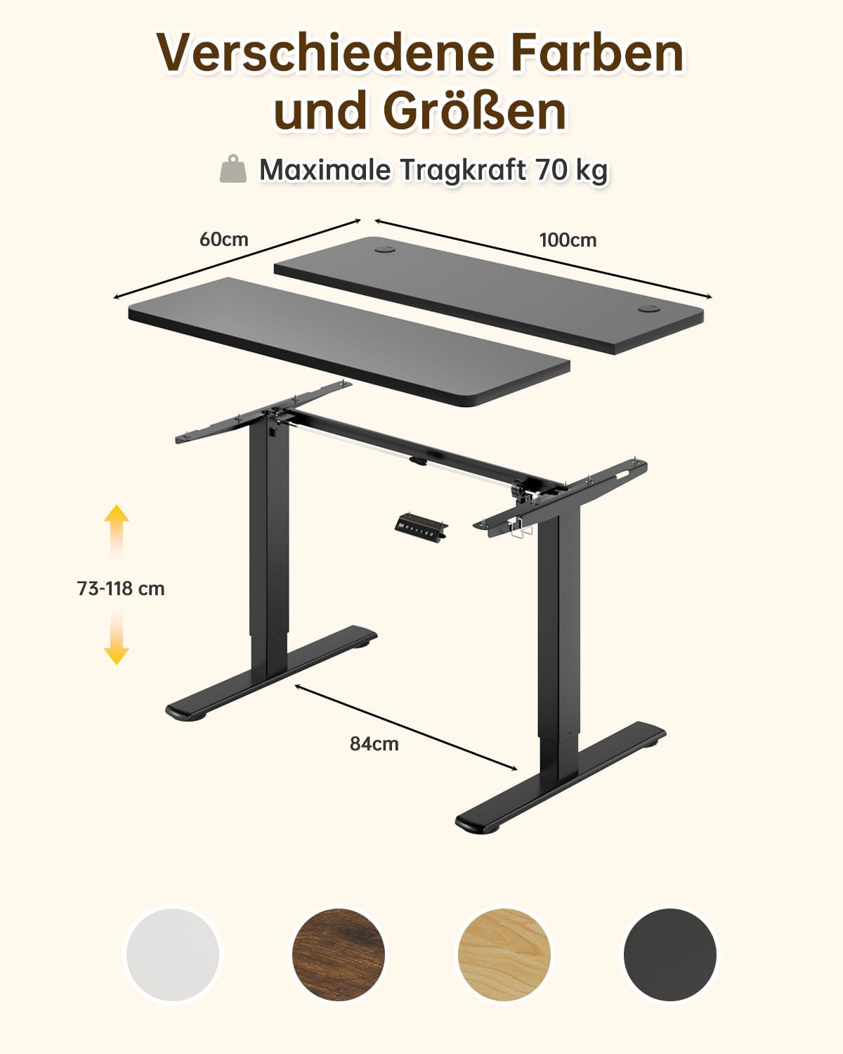 Bin begeistert, Preis/Leistung unschlagbar. Der Tisch kommt hervorragend verpackt und lässt sich schnell und problemlos zusammenbauen. Die beiliegende Montageanleitung ist sehr hilfreich. Einmal zusammengebaut steht der Tisch stabil, kein Wackeln und kein Knarzen. Der Hubmotor läuft ruhig, die Steuerung ist einfach: hoch, runter, zwei Memory-Tasten und ein Timer, der daran erinnert, dass es Zeit ist, im Stehen zu arbeiten. Alles in allem ein guter Tisch zu einem super Preis.