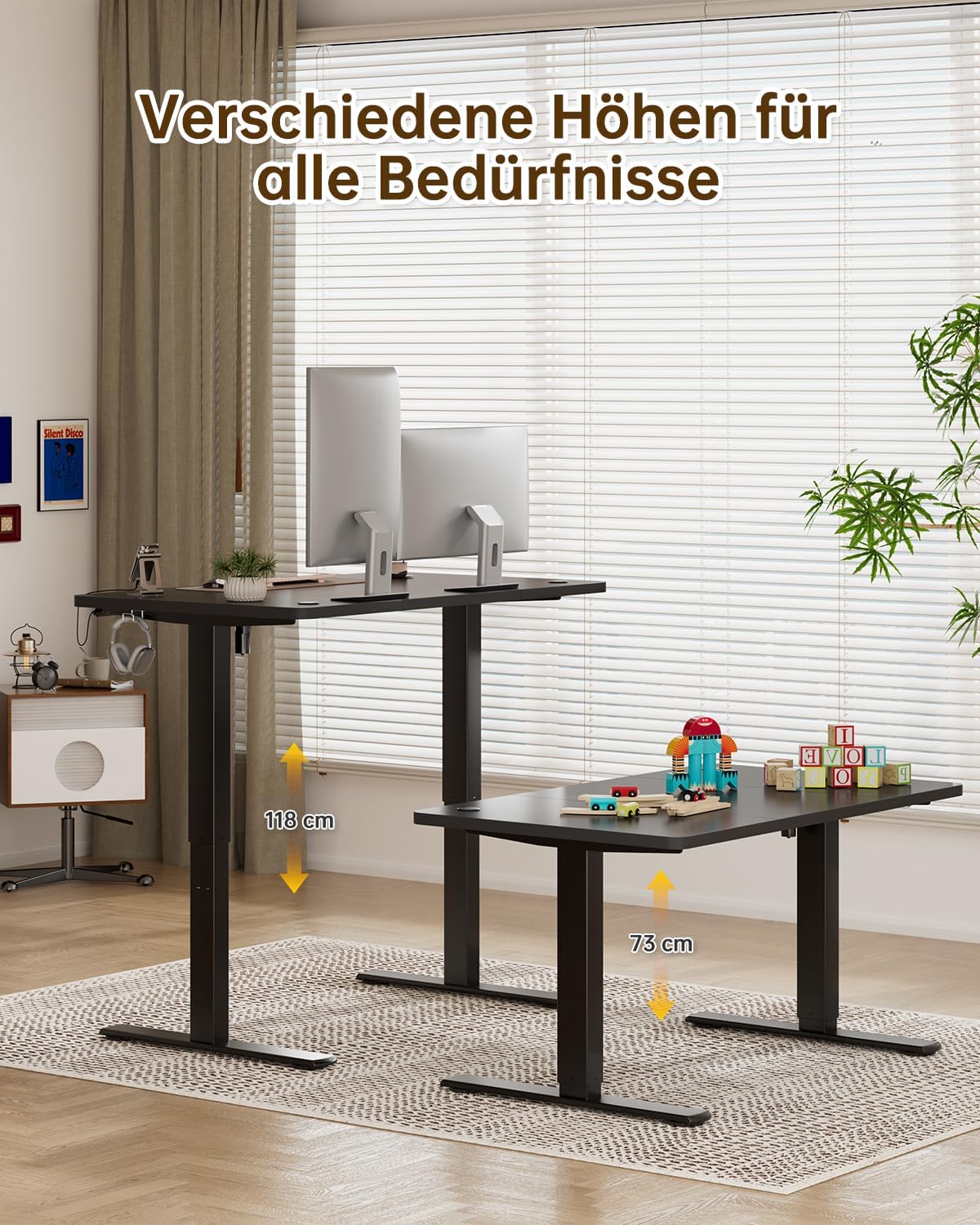 - Intelligent lifting healthy office: Equipped with an intelligent electric lifting system with an adjustable range of 73-120 cm, together with 2 height memory buttons, it can quickly sit and stand in the office, relieve the fatigue of sitting for a long time and improve the efficiency of work and study.