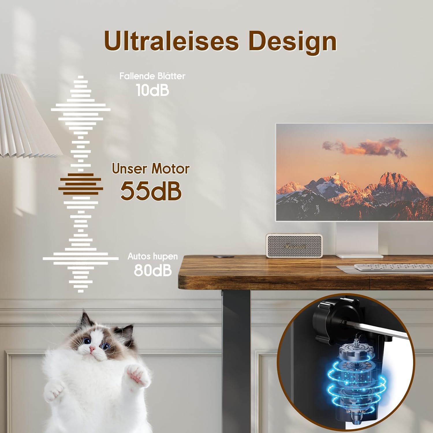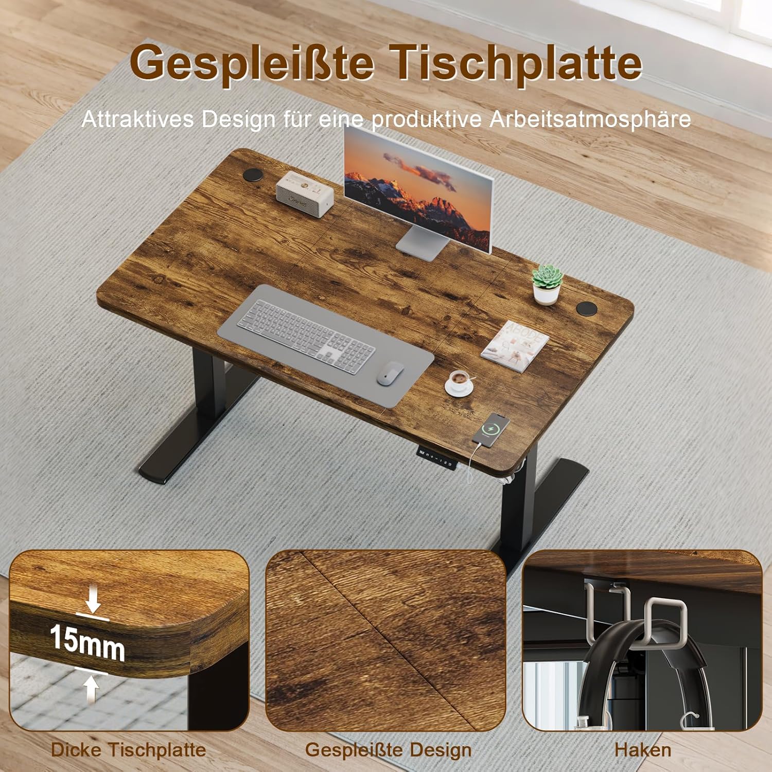 Ich bin sehr zufrieden mit dem JUMMICO höhenverstellbaren Schreibtisch; die elektrische Verstellung läuft leise und zuverlässig, die USB-Ladeanschlüsse sind super praktisch für Laptop und Handy und die Tischplatte wirkt stabil und hochwertig. Der Wechsel zwischen Sitzen und Stehen hat meine Haltung verbessert, der Aufbau war unkompliziert und das Preis-Leistungs-Verhältnis stimmt.