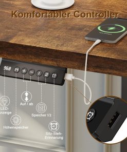 Der JUMMICO höhenverstellbare elektrische Schreibtisch überzeugt durch stabile Verarbeitung, leise und gleichmäßige Höhenverstellung sowie den praktischen USB-Ladeanschluss; die Einstellmöglichkeiten machen den Wechsel zwischen Sitzen und Stehen angenehm und insgesamt bietet der Tisch ein gutes Preis-Leistungs-Verhältnis.