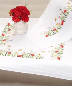 - The pre-printed tablecloth and embroidery thread are made from 100% cotton