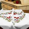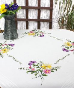- The tablecloth has a pre-printed embroidery pattern and a woven decorative edge