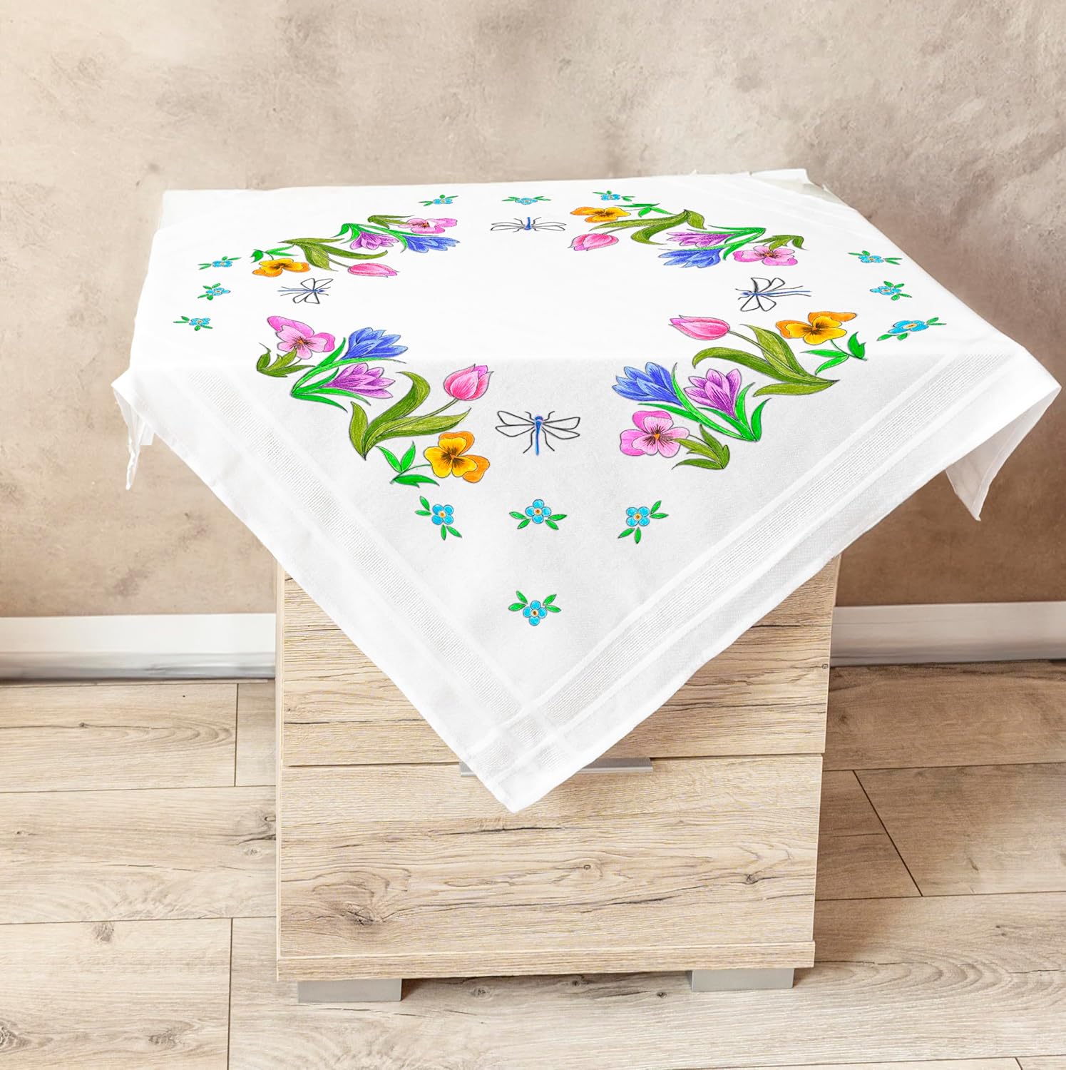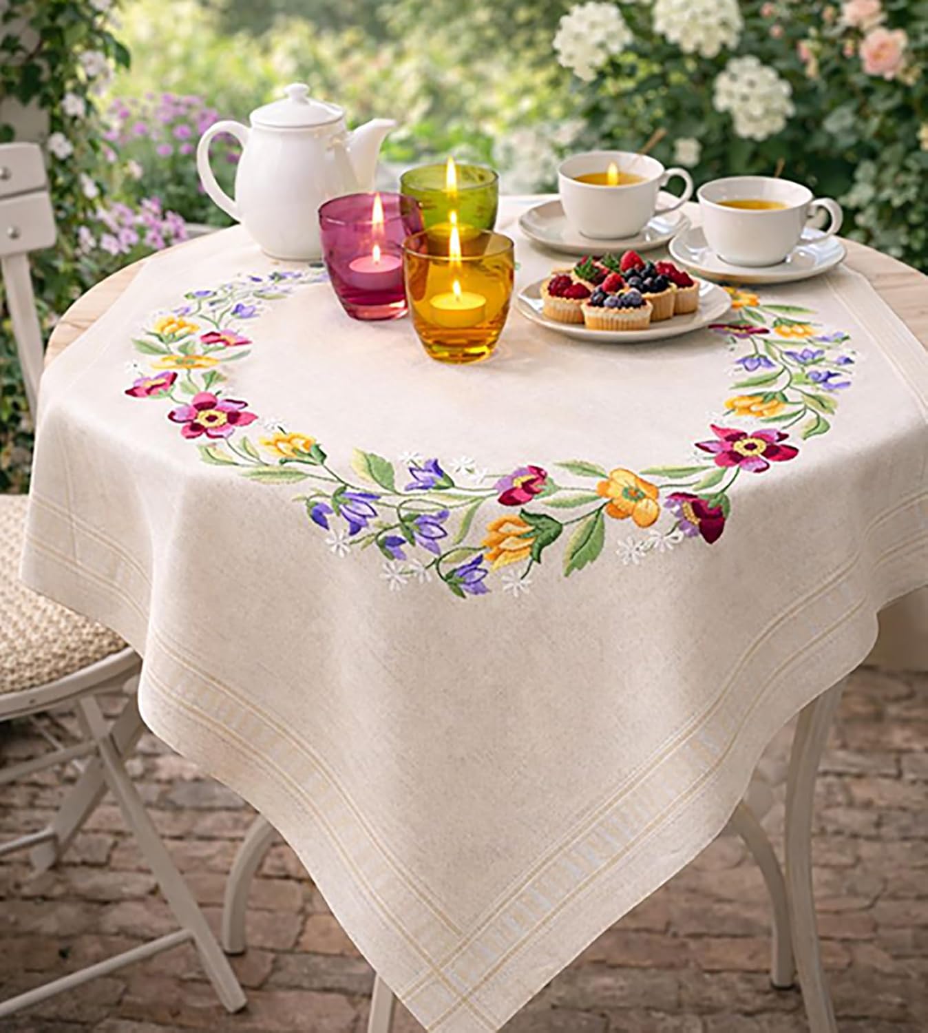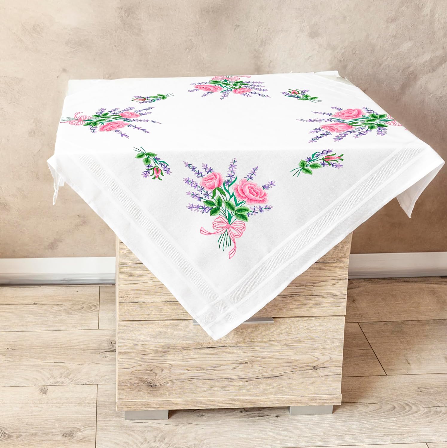 - Dieses Set enthält das komplette Material: eine exakt vorgedruckte Tischdecke in 80 cm x 80 cm, eine detaillierte, mit farbiger Grafik dargestellte Stickanleitung und farblich vorsortiertes ausreichendes Stickgarn