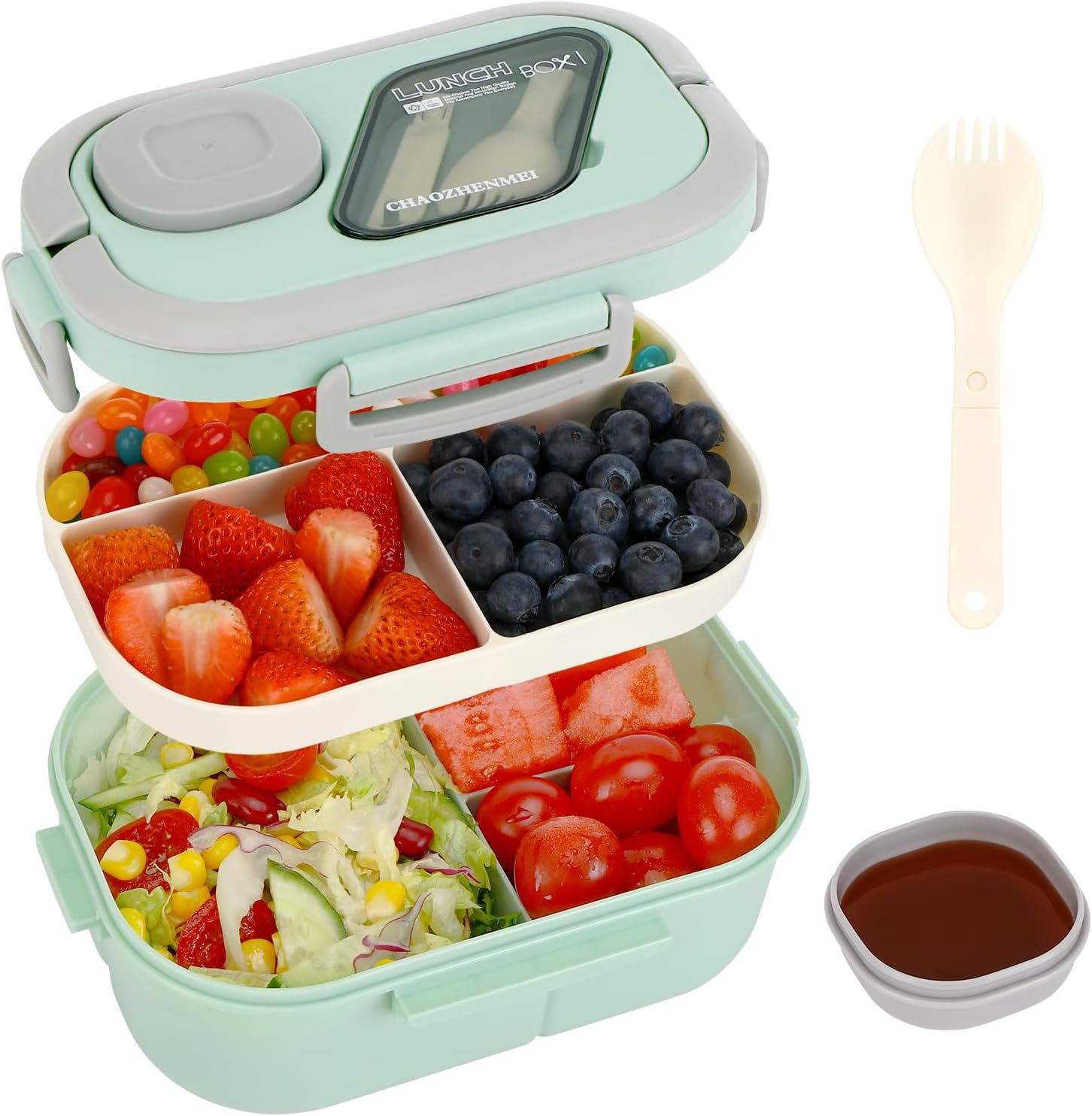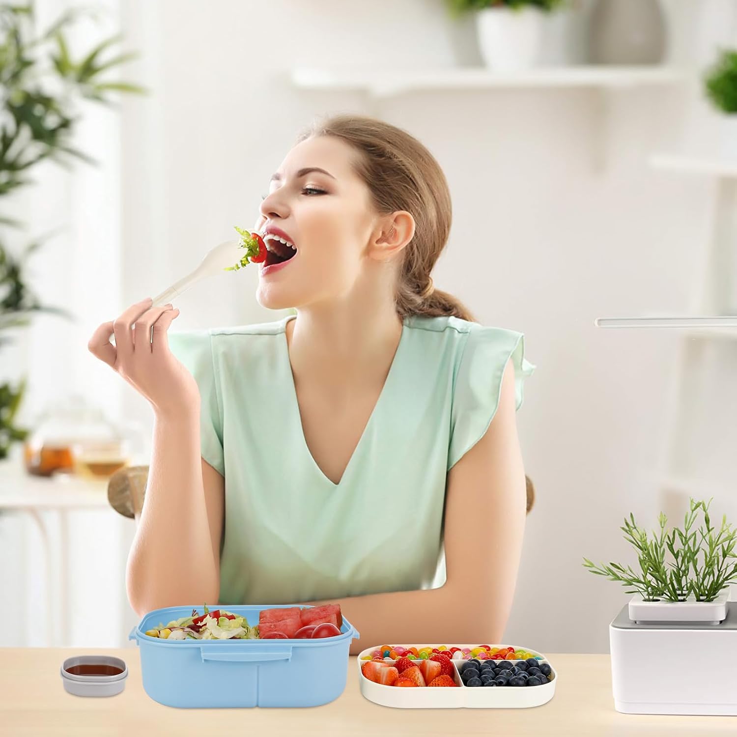 Praktische Bento-Box mit gut durchdachten Fächern und einem hilfreichen Löffel — perfekt für Salat oder Pausenbrot. Sie wirkt stabil, ist BPA-frei, lässt sich leicht reinigen und hält unterwegs gut dicht; ideal für Erwachsene und Kinder.
