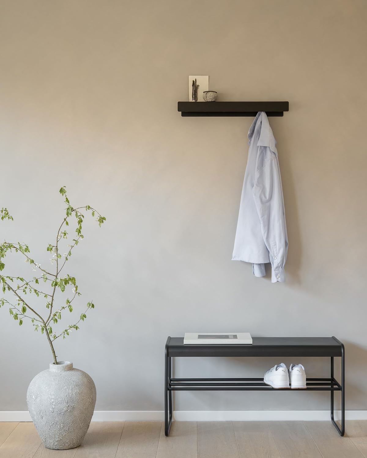 - Easy to use: The additional storage space above the coat hook is equally suitable for functional use as well as for stylish accents. Decoration becomes part of the design without disturbing it
