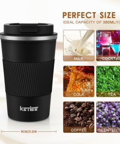 - Leak-proof coffee to go mug: Our thermo mug coffee-to-go does not leak even when shaken 360 ° and tilted. The Ketiee coffee mug comes with a BPA-free, leak-proof screw-on lid and silicone seal to minimise the risk of spills.
