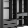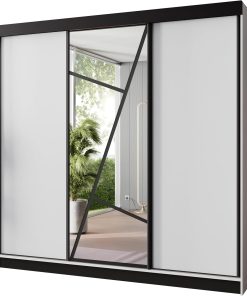 - Robustes Schiebetürsystem: Der Schrank verwendet robuste Metallführungen und gelagerte Rollen, so dass die Türen leicht und problemlos verschiebbar sind.