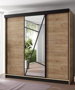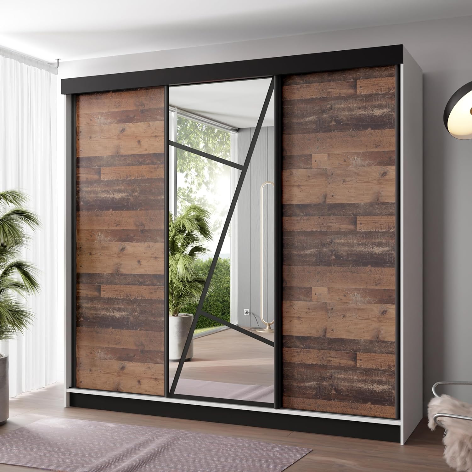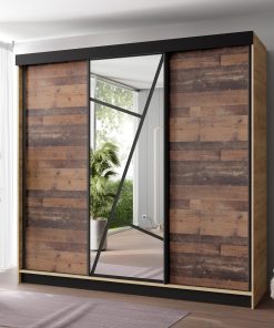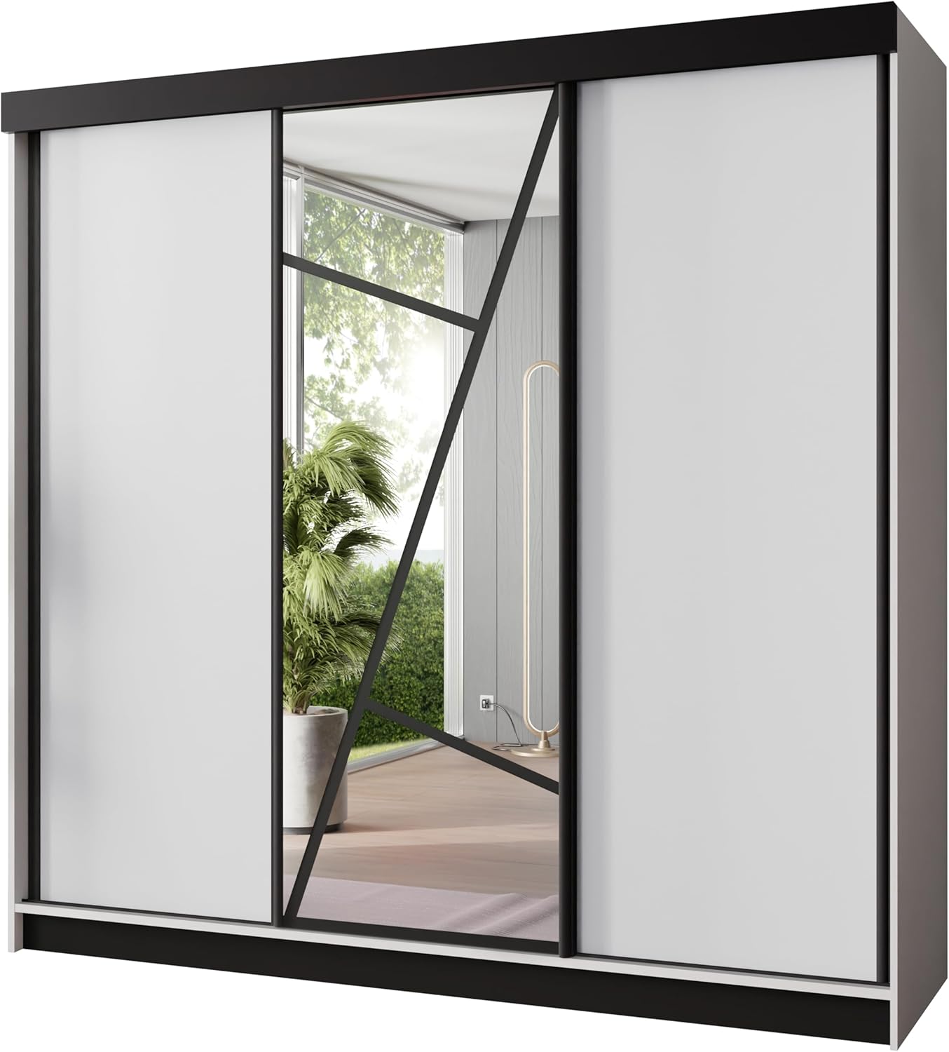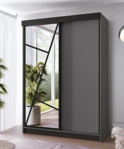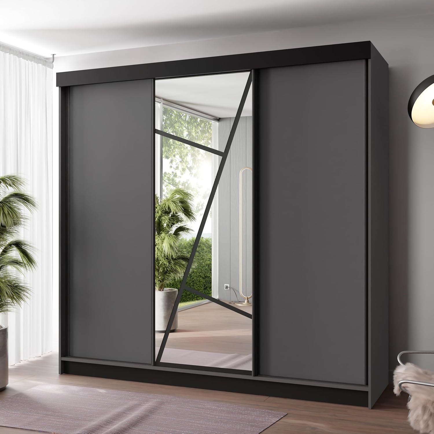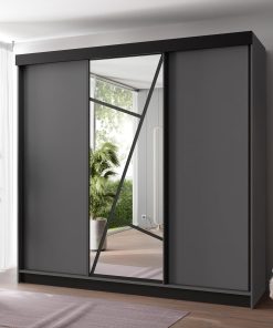 Ein moderner, praktischer und funktioneller Schiebetürenschrank, der in jedem Interieur passt. Er ist die beste Wahl für Menschen, die Wert auf Produktfunktionalität, Aussehen, Benutzerfreundlichkeit und Kapazität legen. Der VENA Kleiderschrank bietet nicht nur Stauraum, sondern ist auch eine attraktive Dekoration für Interieur. Der Spiegel verleiht dem Schrank ein einzigartiges und elegantes Aussehen und ermöglicht es Ihnen gleichzeitig, Platz im Raum zu sparen, da Sie keinen zusätzlichen Platz für den Spiegel an der Wand benötigen. Der Garderobe eignet sich als Mehrzweckschrank für Räume wie das Schlafzimmer, den Flur, das Wohnzimmer, das Ankleidezimmer oder das Jugendzimmer. Der Schrank verfügt über ein Schiebetürsystem auf Lagerbasis. Mit diesem System gleitet die Tür reibungslos, leicht und ohne Probleme. Unser Schrank ist in vielen Größen und Farben erhältlich (u. a. grau, weiß, schwarz, Holzimitat), so dass Sie leicht ein Modell finden werden, das zum Stil und zu den Farben Ihrer Einrichtung passt.