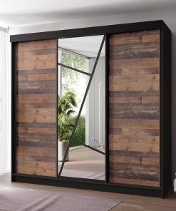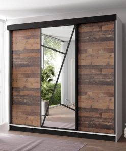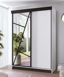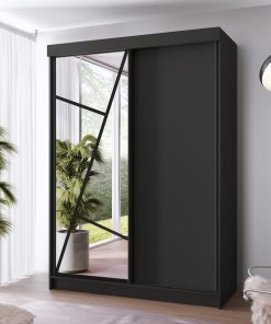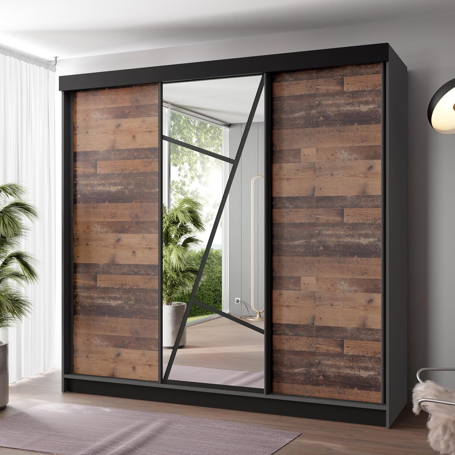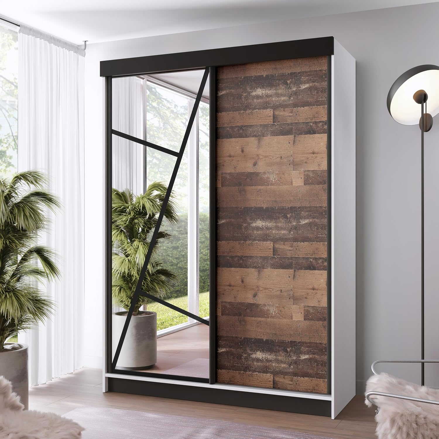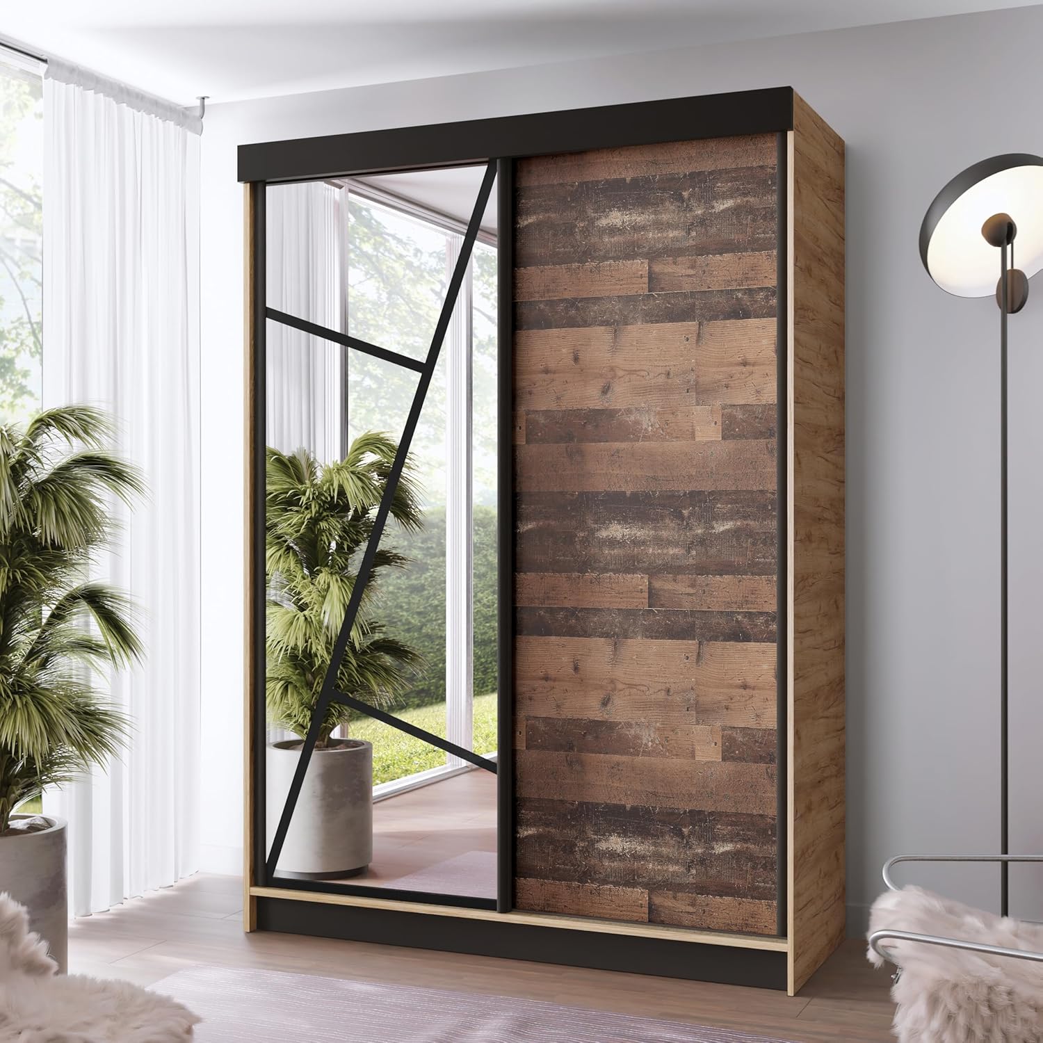 Ein moderner, praktischer und funktioneller Schiebetürenschrank, der in jedem Interieur passt. Er ist die beste Wahl für Menschen, die Wert auf Produktfunktionalität, Aussehen, Benutzerfreundlichkeit und Kapazität legen. Der VENA Kleiderschrank bietet nicht nur Stauraum, sondern ist auch eine attraktive Dekoration für Interieur. Der Spiegel verleiht dem Schrank ein einzigartiges und elegantes Aussehen und ermöglicht es Ihnen gleichzeitig, Platz im Raum zu sparen, da Sie keinen zusätzlichen Platz für den Spiegel an der Wand benötigen. Der Garderobe eignet sich als Mehrzweckschrank für Räume wie das Schlafzimmer, den Flur, das Wohnzimmer, das Ankleidezimmer oder das Jugendzimmer. Der Schrank verfügt über ein Schiebetürsystem auf Lagerbasis. Mit diesem System gleitet die Tür reibungslos, leicht und ohne Probleme. Unser Schrank ist in vielen Größen und Farben erhältlich (u. a. grau, weiß, schwarz, Holzimitat), so dass Sie leicht ein Modell finden werden, das zum Stil und zu den Farben Ihrer Einrichtung passt.
