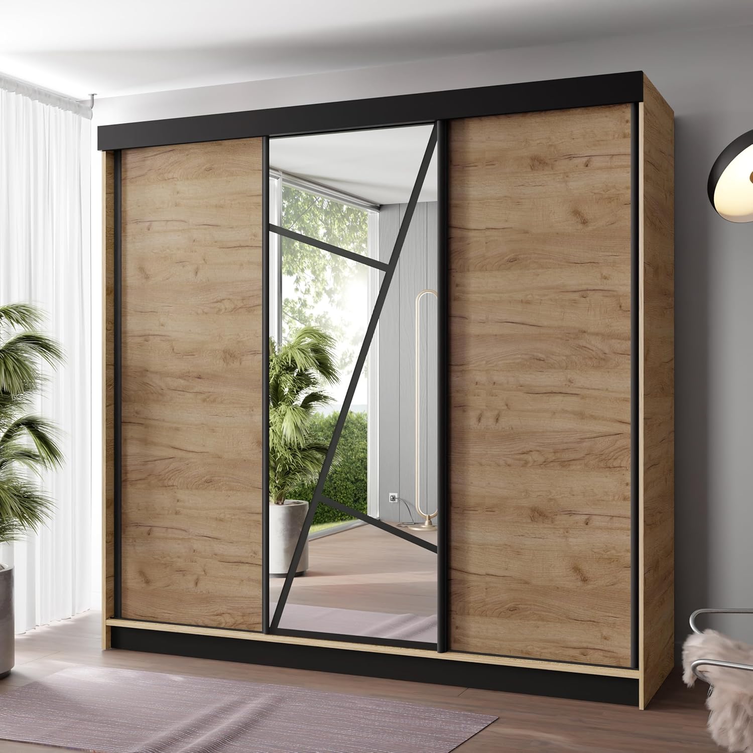 Schöner, funktionaler Kleiderschrank in Craft Eiche: der große Spiegel und die ruhigen Schiebetüren gefallen mir, innen gibt es viel Platz durch stabile Fachböden und eine robuste Kleiderstange. Die Optik passt gut ins Schlafzimmer, die Lieferung und der Aufbau waren unkompliziert. Insgesamt sehr zufrieden mit Preis-Leistung.