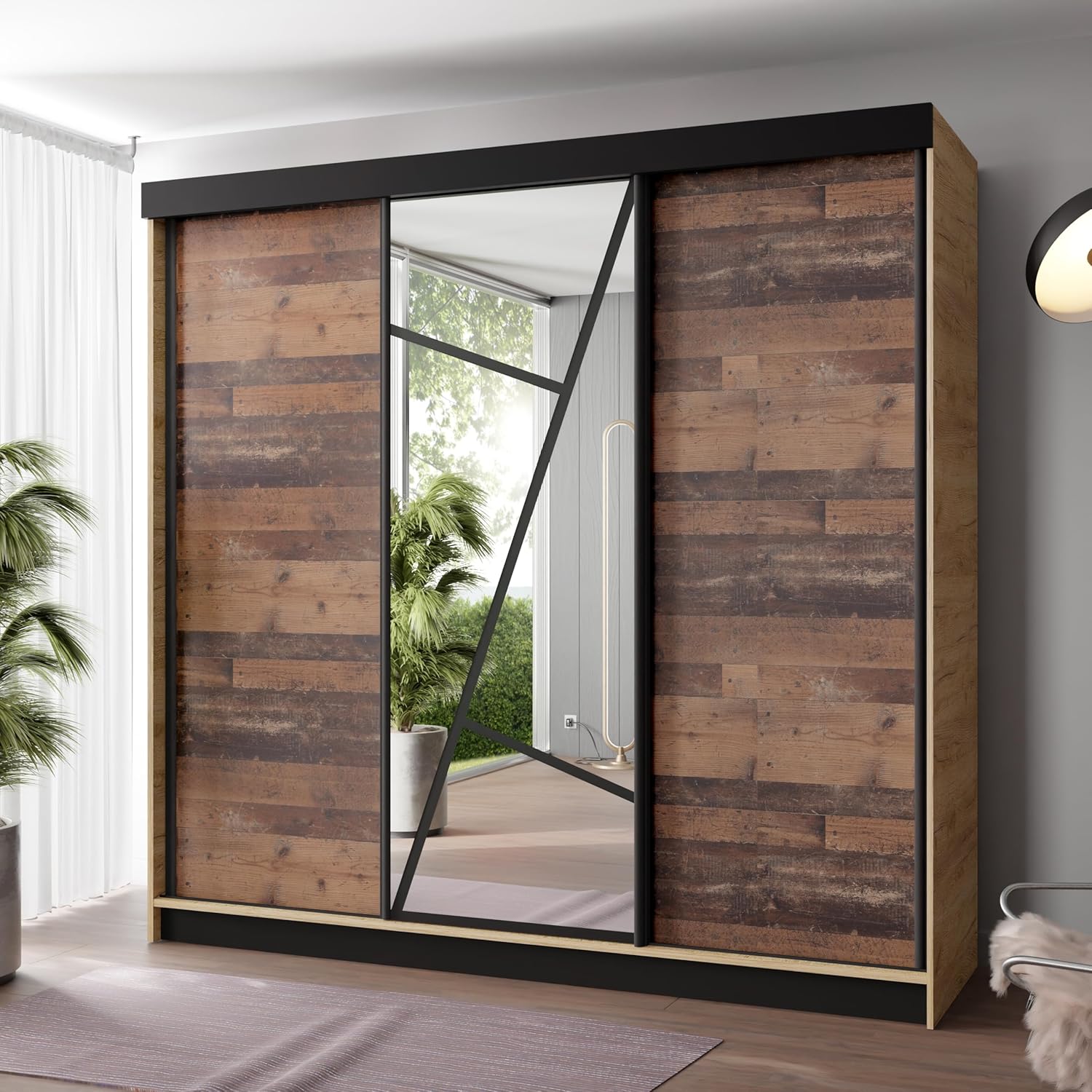 Sehr schicker und stabiler Kleiderschrank in Craft Eiche, bietet viel Stauraum durch Regalböden, Kleiderstange und die praktischen Schiebetüren, der Spiegel ist gut integriert und die Montage ging problemlos von der Hand – tolles Preis-Leistungs-Verhältnis, sehr zufrieden.