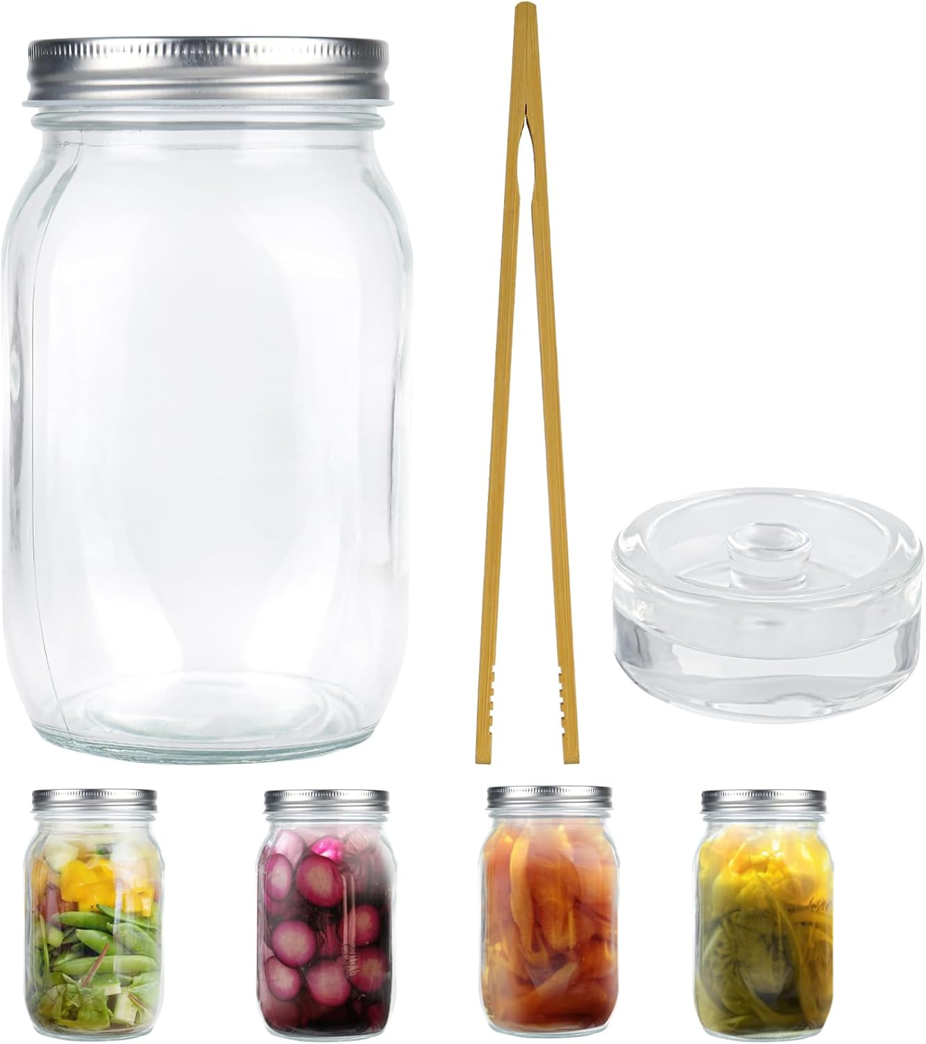 - Komplettes Fermentationsset:Fermentiergläser 1-Liter-Klarglas, Holzzange und Gewichte. Damit haben Sie alles, was Sie zum einfachen Fermentieren Ihrer Lieblingsspeisen wie Sauerkraut und Sauerkraut benötigen. Sie eignen sich hervorragend für Pfannkuchen oder Marmeladen, Gelees, Honig, Haferflocken und mehr. Darüber hinaus können sie mit Ihrer Innovation zu handgefertigten Geschenken wie selbstgemachten Kerzen, Partygeschenken, Hochzeitsgeschenken usw. werden.