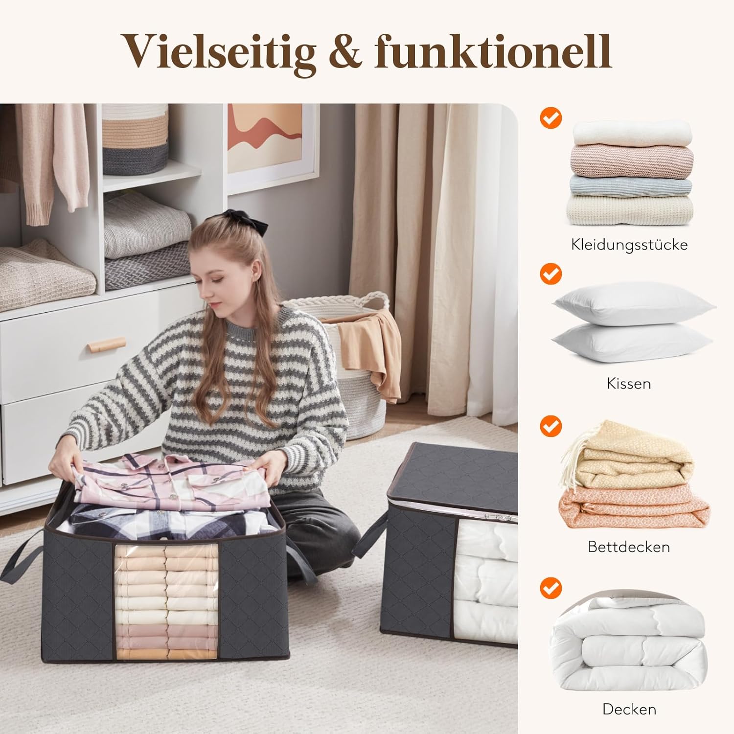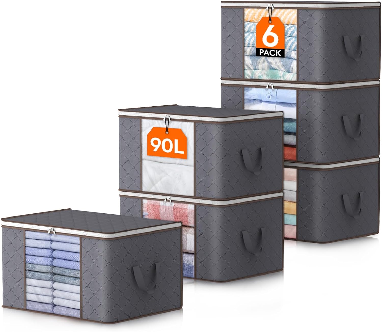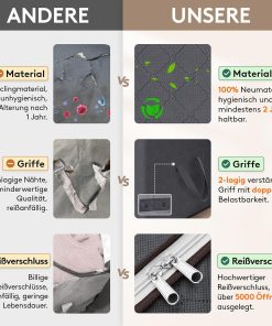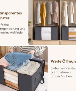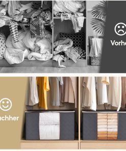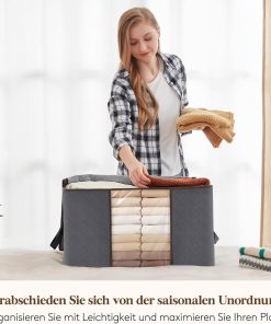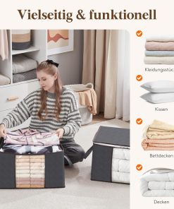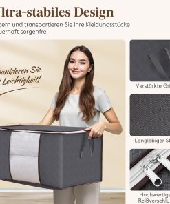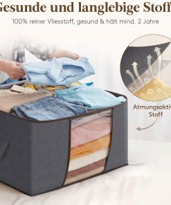 Die 90‑Liter-Aufbewahrungstaschen sind groß, robust und lassen sich bei Nichtgebrauch platzsparend zusammenfalten. Der Deckel schließt sicher, der Reißverschluss läuft gut und die Griffe machen das Tragen einfach, sodass Bettdecken, Decken und Kleidung ordentlich verstaut oder beim Umzug transportiert werden können. Gutes Preis-Leistungs-Verhältnis, kann ich empfehlen.