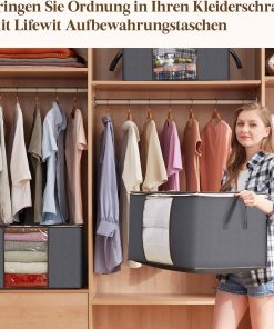 Das Lifewit 3er-Set mit 90L Aufbewahrungstaschen bietet viel Stauraum, lässt sich leicht zusammenfalten, der Deckel sitzt gut und das Material wirkt stabil; die graue Farbe ist unauffällig und die Boxen eignen sich gut für Bettdecken, Decken und Kleidung bei Umzug oder zur saisonalen Lagerung.