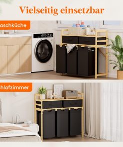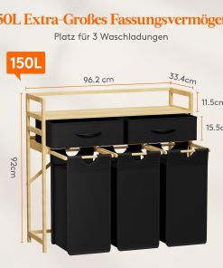 - 150L Großes Fassungsvermögen: Dieser Wäschekorb mit 3 Fächern enthält drei herausnehmbare 50L Wäschesäcke bieten genügend Platz für die Familienwäsche einer ganzen Woche. Die obere Ablage des Wäschesammlers ist perfekt für Waschmittel und Pflegeprodukte.