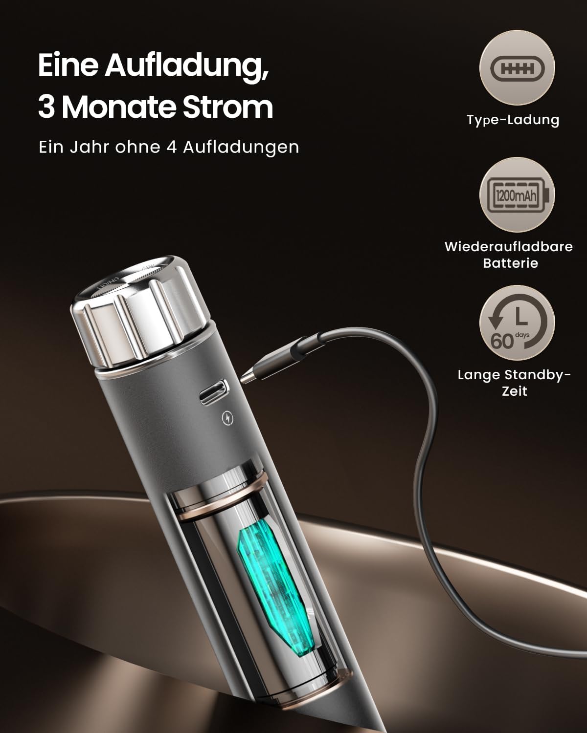 - 1200mAh Marathon-Akku: 3 Monate Nutzung (30x 15s/Tag) mit USB-C-Schnellladung (0→100% in 3h). Wiederaufladbarer Akku erspart 100+ Einwegbatterien