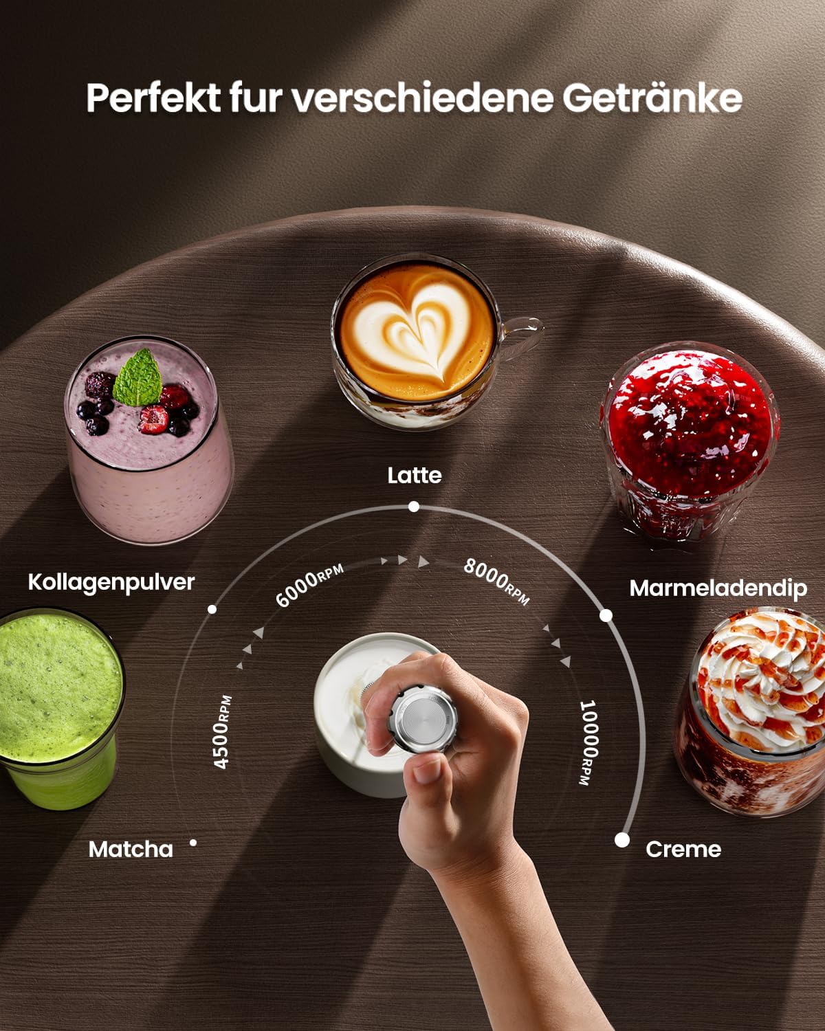 - 360° Getränke-Multitalent: Kompatibel mit Milchalternativen, Proteinpulvern, Matcha & Kakao. Ideal für Cappuccino, Babybrei oder Cocktail-Toppings