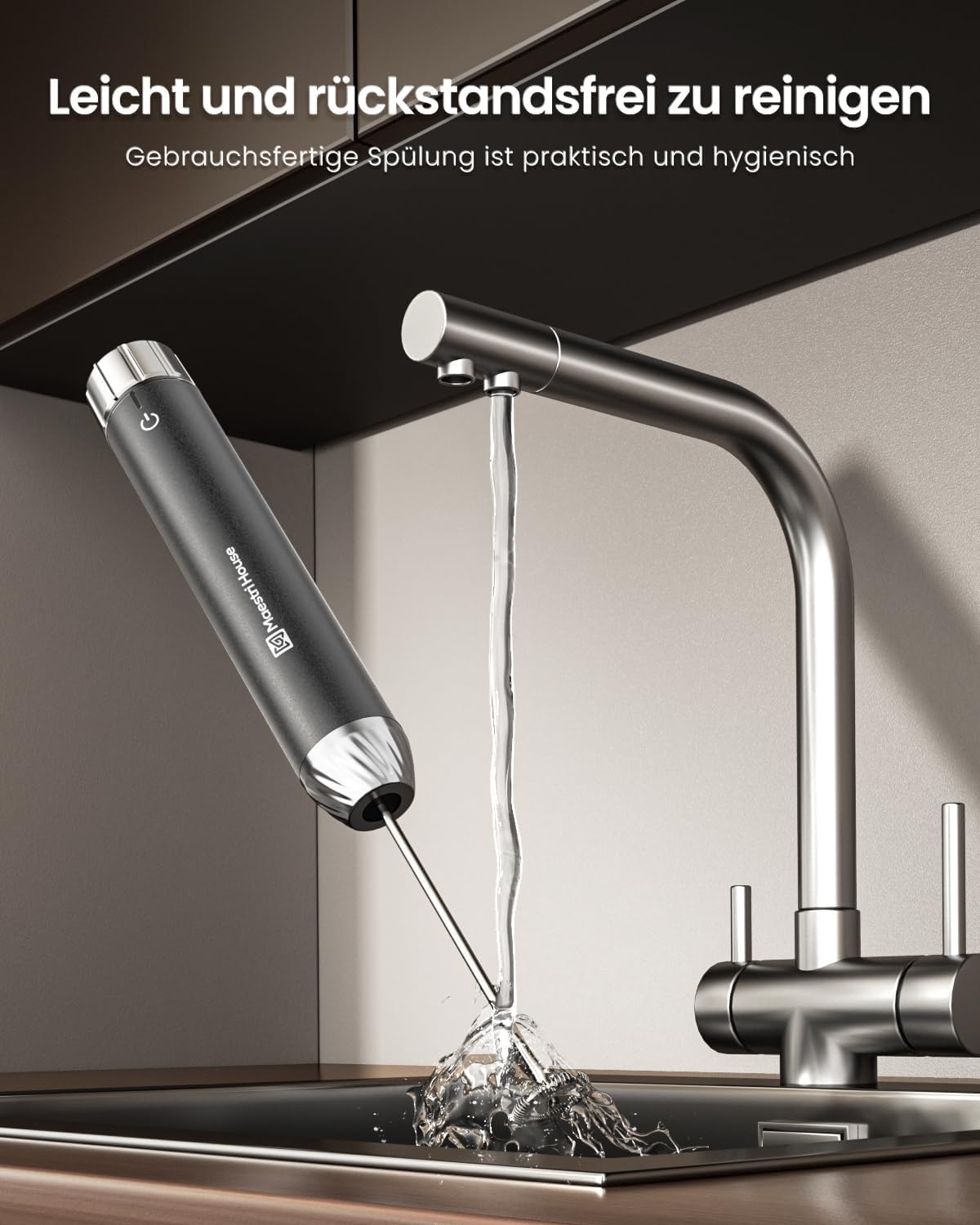 Der Maestri House LunaFro Max macht genau, was er soll: in Sekundenschnelle cremigen, feinporigen Milchschaum für Latte und Cappuccino. Die stufenlose Geschwindigkeitsregelung ist praktisch, der Akku hält lange und der abnehmbare Edelstahlschneebesen lässt sich unkompliziert reinigen. Das Gerät wirkt solide und ist dank der Wasserdichtigkeit sehr alltagstauglich – für mich ein klarer Favorit.