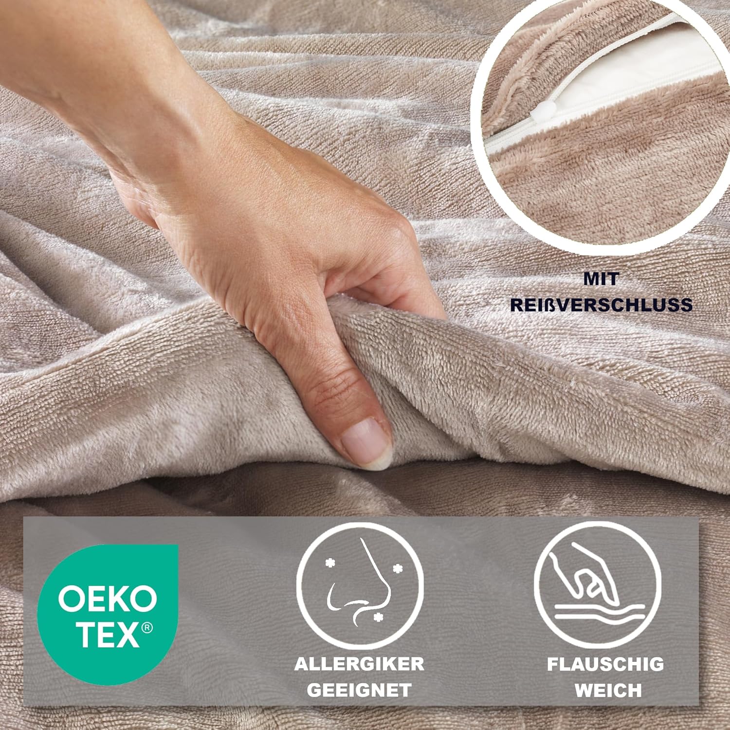 Sehr zufrieden mit den Kissenbezügen: das Cashmer Touch Fleece fühlt sich angenehm weich an, die Größe passt perfekt und die Taupe-Farbe sieht edel aus. Waschbar und formstabil, wirkt hochwertig für den Preis und bringt gemächliche Gemütlichkeit aufs Sofa.
