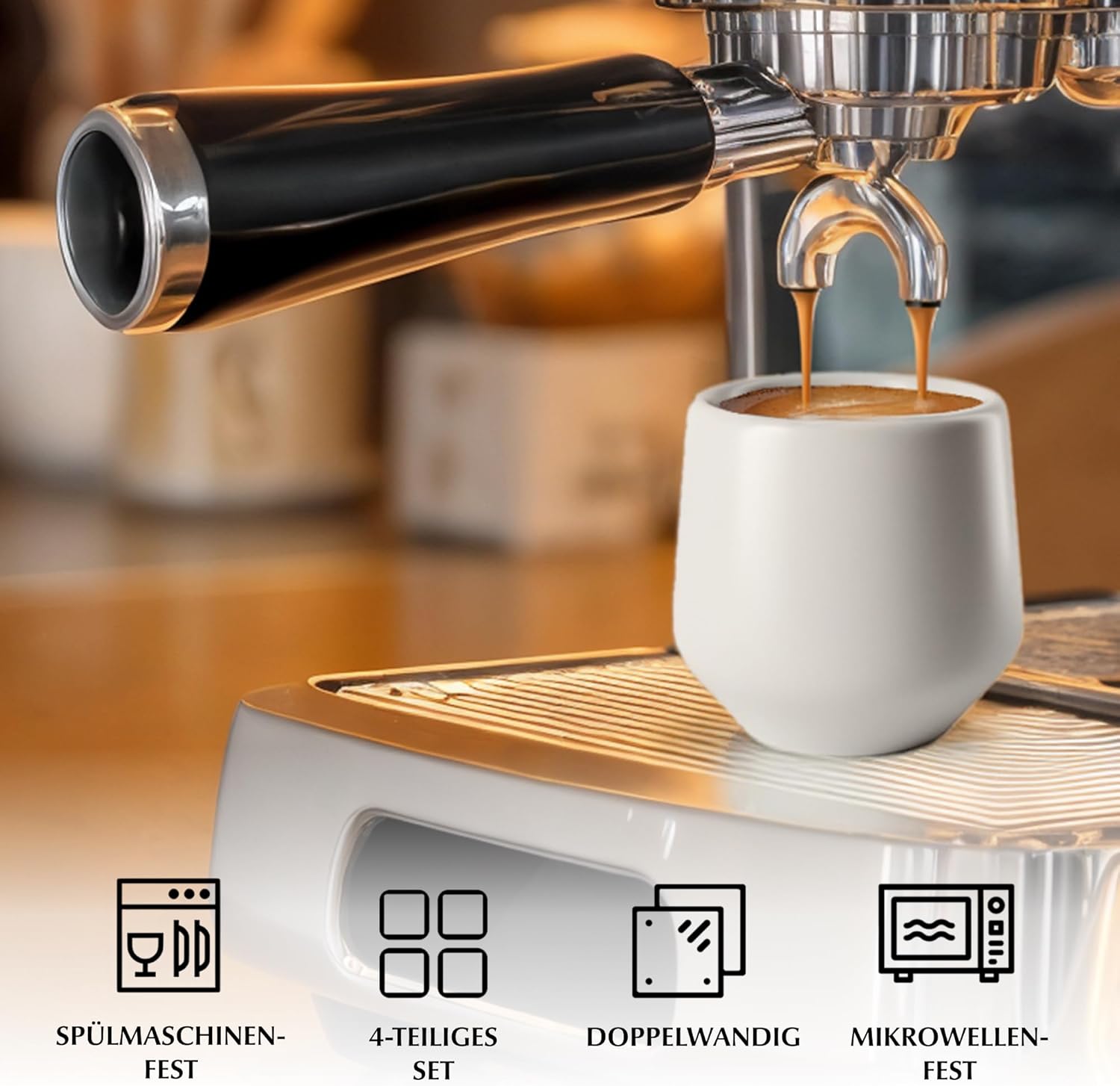 MIAMIO – Espresso Cups Set of 4 (90 ml) / Ceramic Cups without Handle, Espresso Cups, Espresso Cups Thick-Walled, Mocha Cups – Luxe Collection (Classic Pastel)