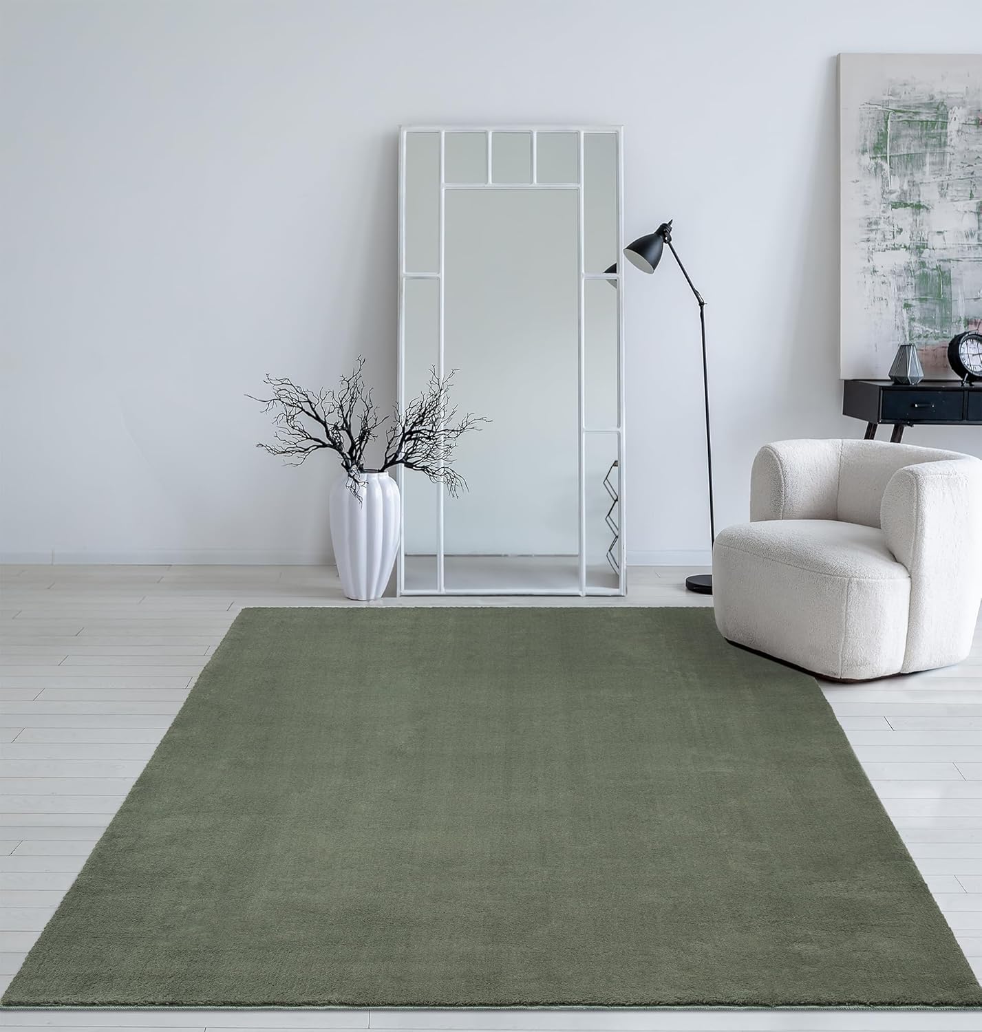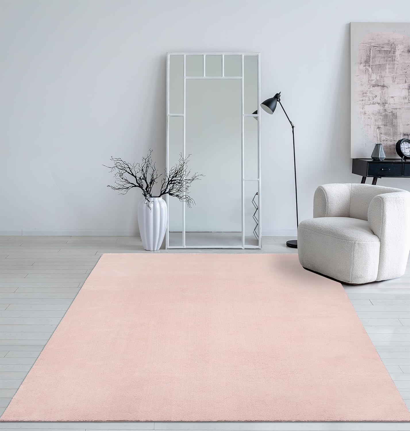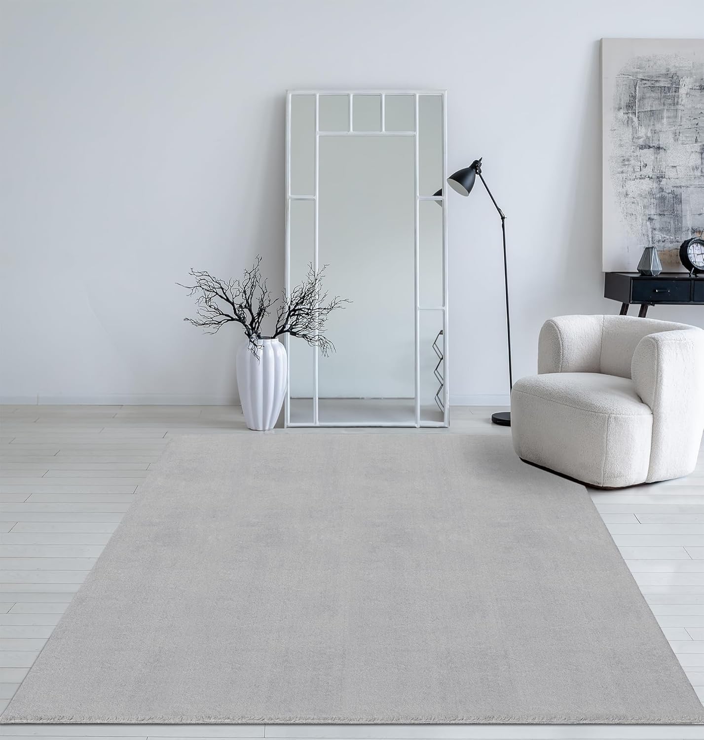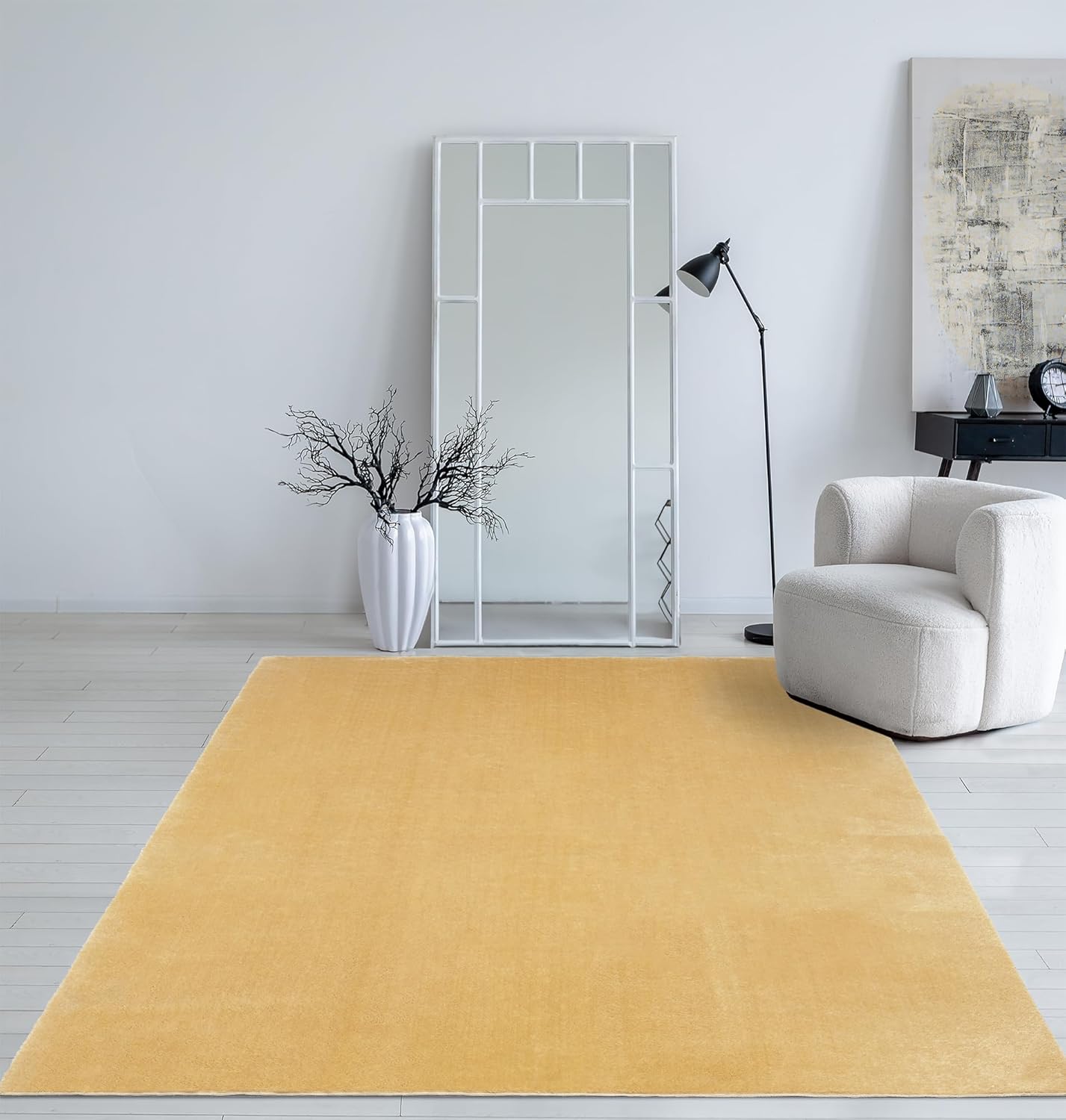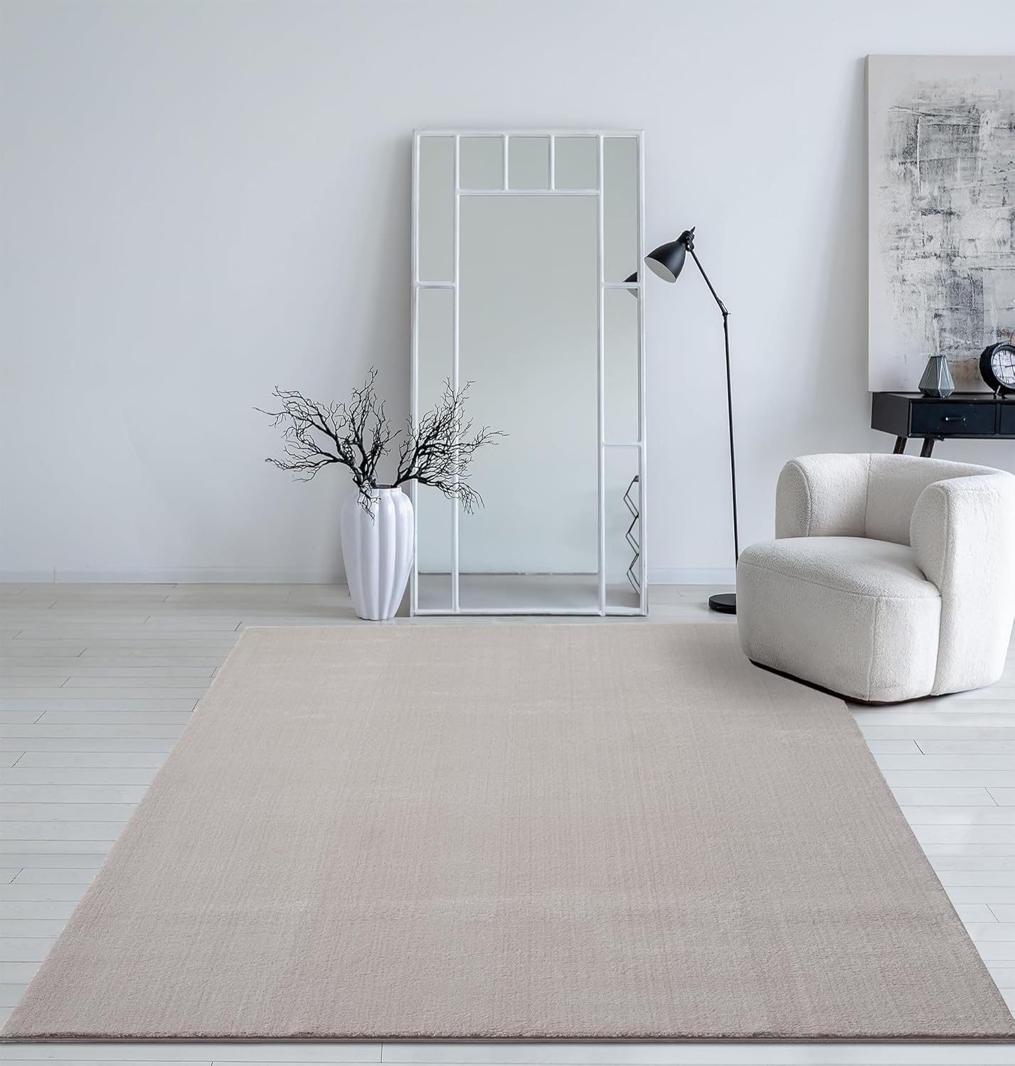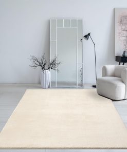 Mia´s Teppiche Taos – kuscheliger Kurzflor Teppich in Felloptik, super Soft & waschbar bis 30°C, mit Anti-Rutsch-Unterseite, Wohnzimmer & Schlafzimmer, Made in Turkey, Creme, 160 x 220 cm