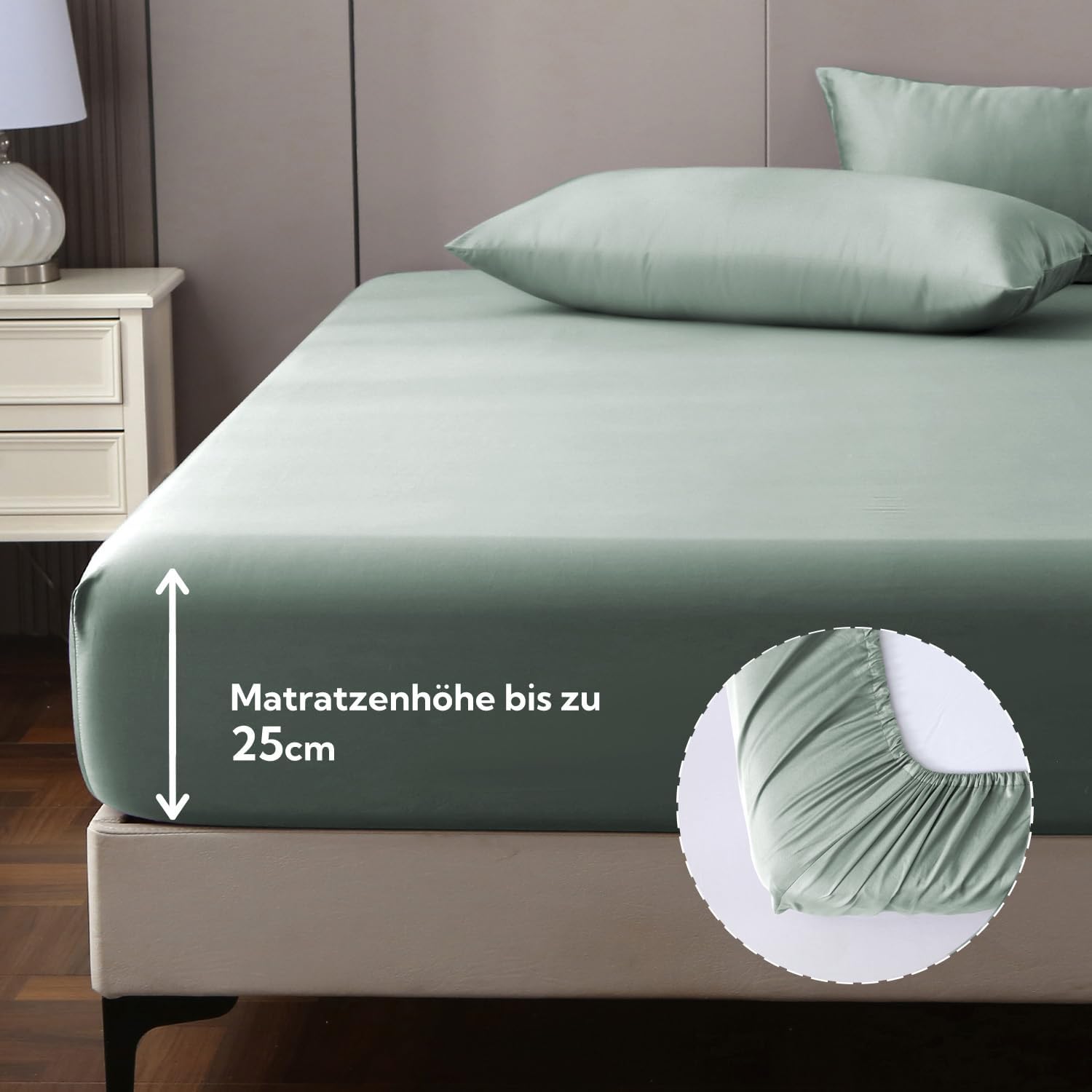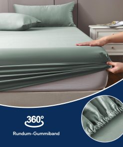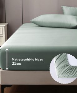 Das Spannbettlaken in der Grausage-Farbe ist sehr angenehm und fühlt sich seidig weich an. Es passt perfekt auf meine 20 cm Matratze, sitzt straff ohne zu verrutschen und wirkt hochwertig verarbeitet; nach mehreren Wäschen blieben Farbe und Form erhalten, das Oeko-Tex-Zertifikat ist ein schönes Extra.