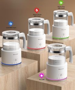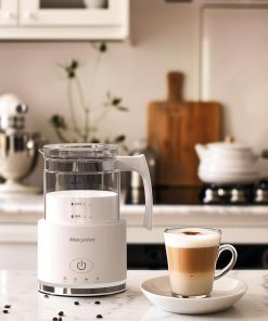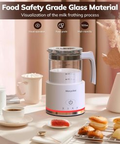 Morpilot Milchaufschäumer Elektrisch, 4 in 1 Milchschäumer für Heißer und Kalter, 600W 500ml, Spülmaschinenfest Aufschäumer, Latte-Design, Visuelles Glas, Weiß