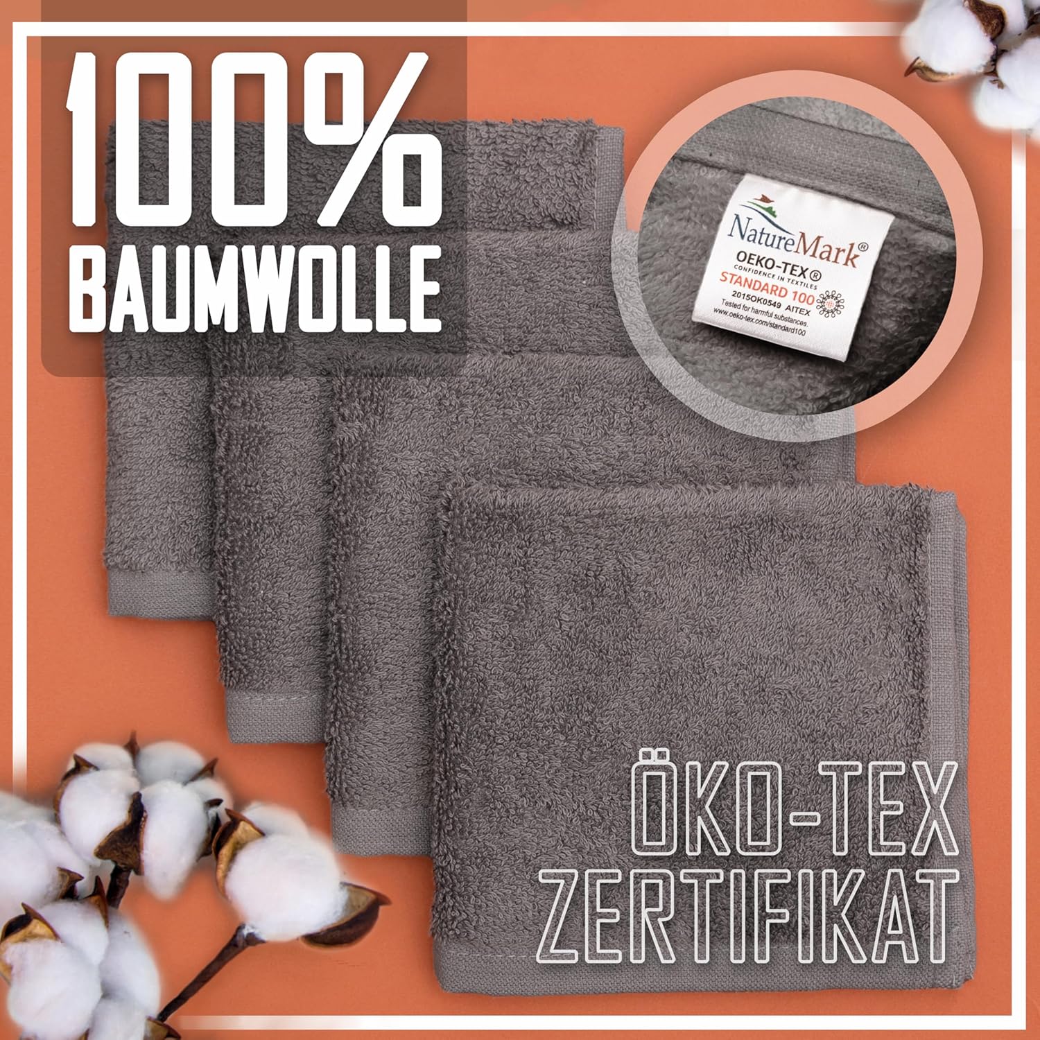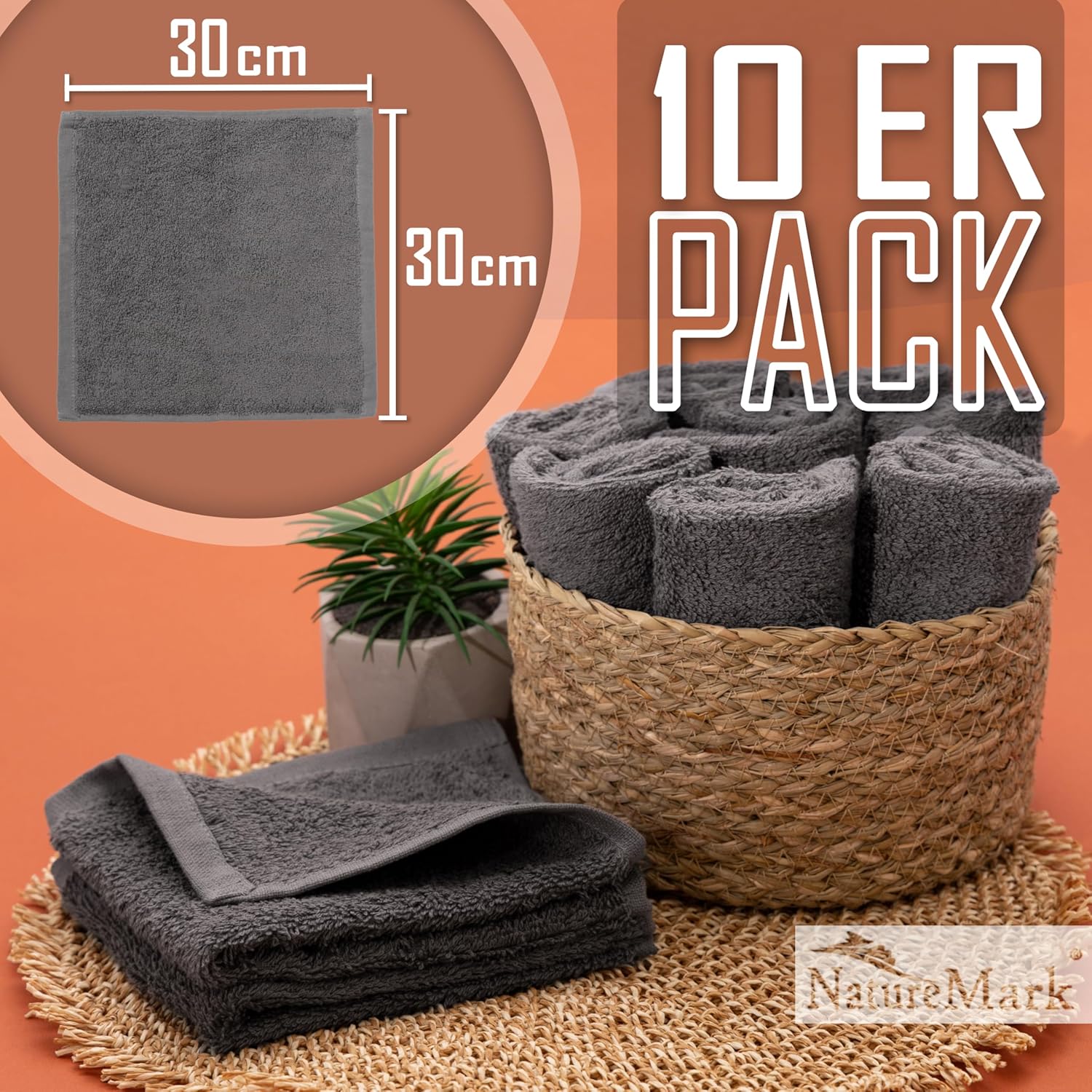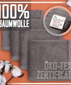 Die NatureMark 10er-Frottee-Waschlappen sind sehr weich und saugfähig, mit der handlichen Größe von 30×30 cm und einer schönen Anthrazitgrau-Farbe; sie fühlen sich angenehm auf der Haut an und bleiben auch nach mehreren Waschgängen formstabil, gutes Preis-Leistungs-Verhältnis.