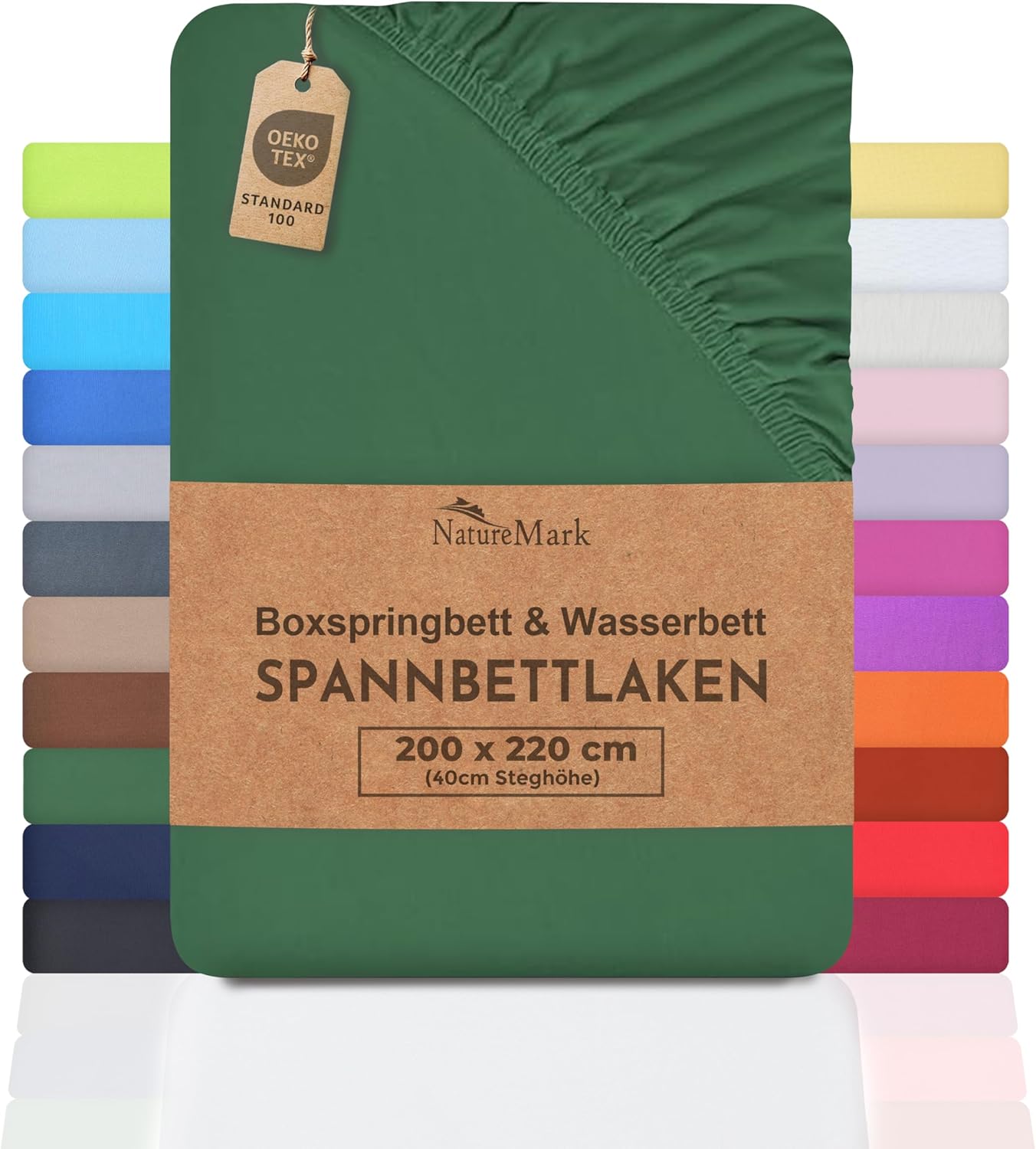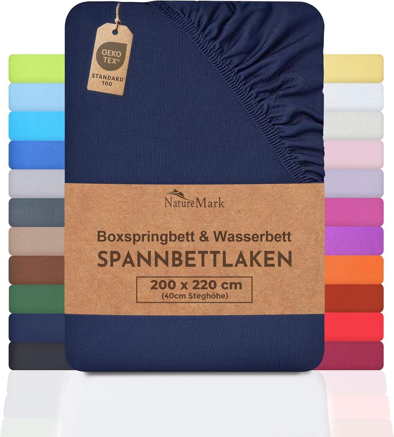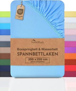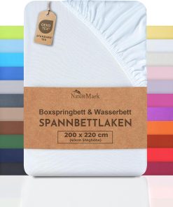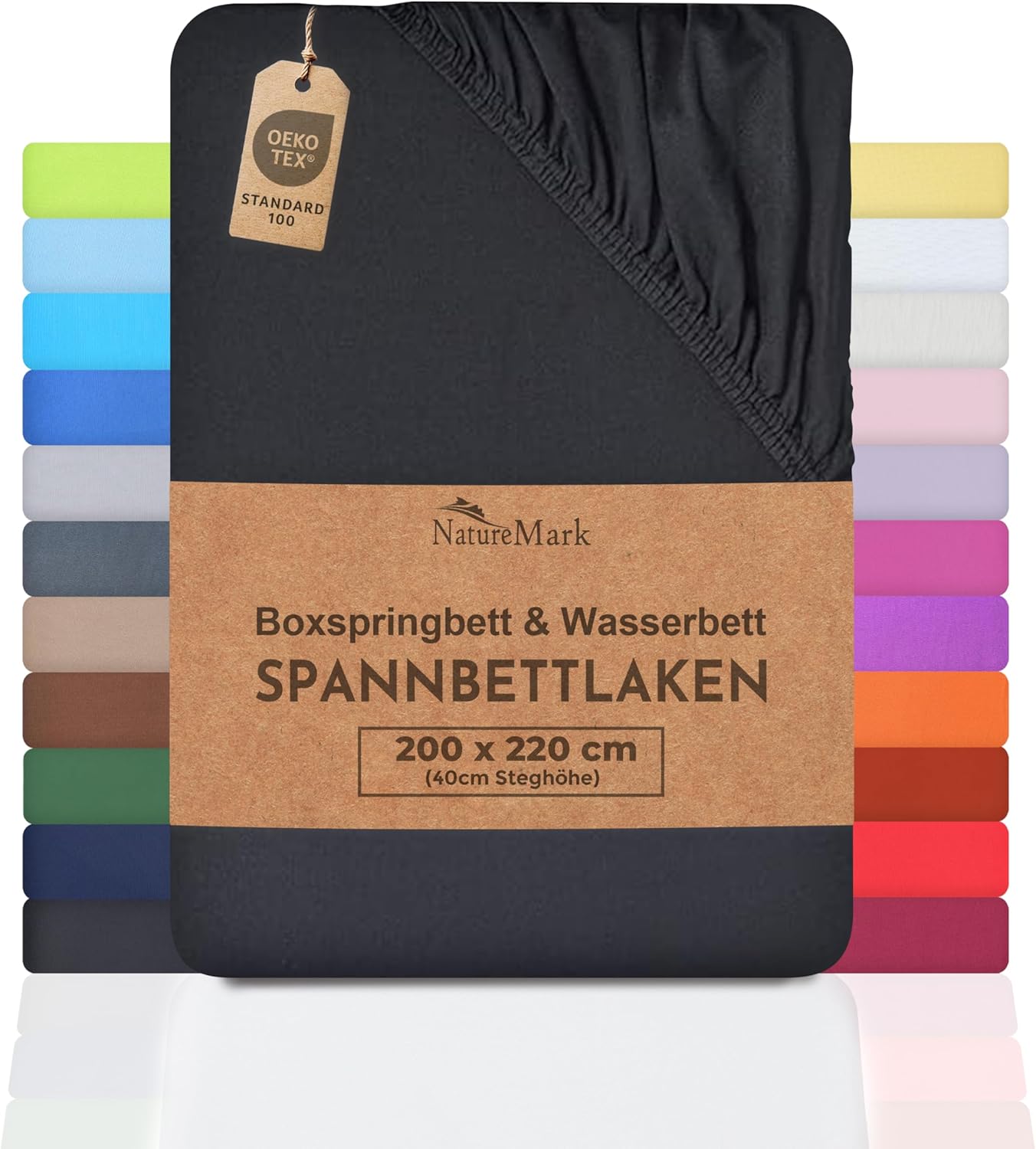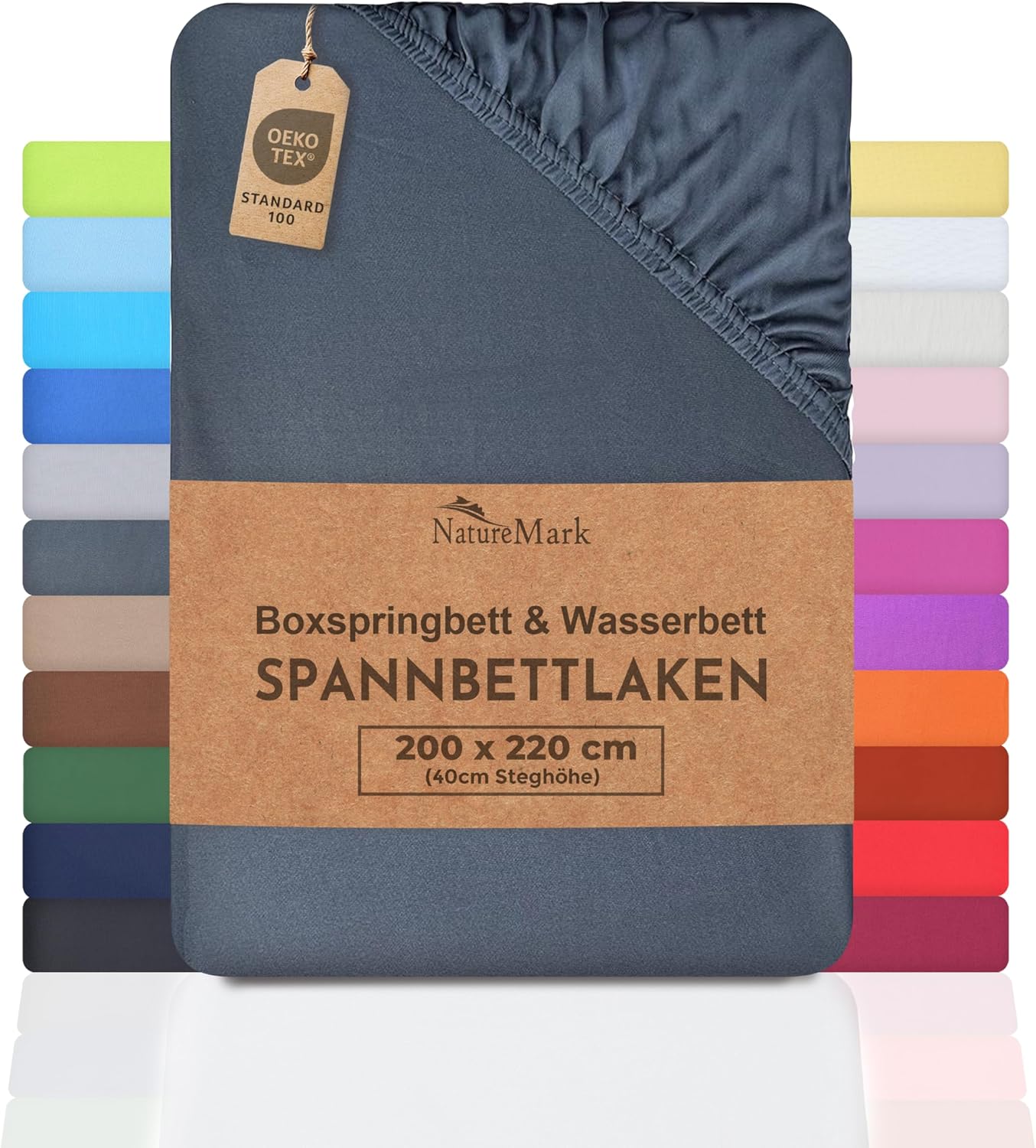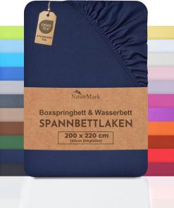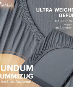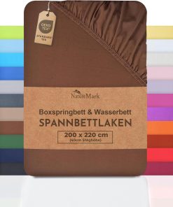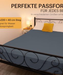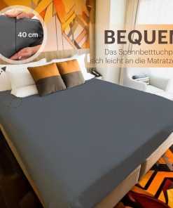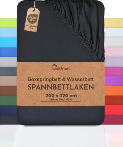 NatureMark Basic Boxspringbett & Wasserbett Spannbettlaken 200 x 220 cm – 40 cm Steghöhe – 200x220cm Spannbetttuch – 100% Baumwolle, Anthrazit/Dunkel grau