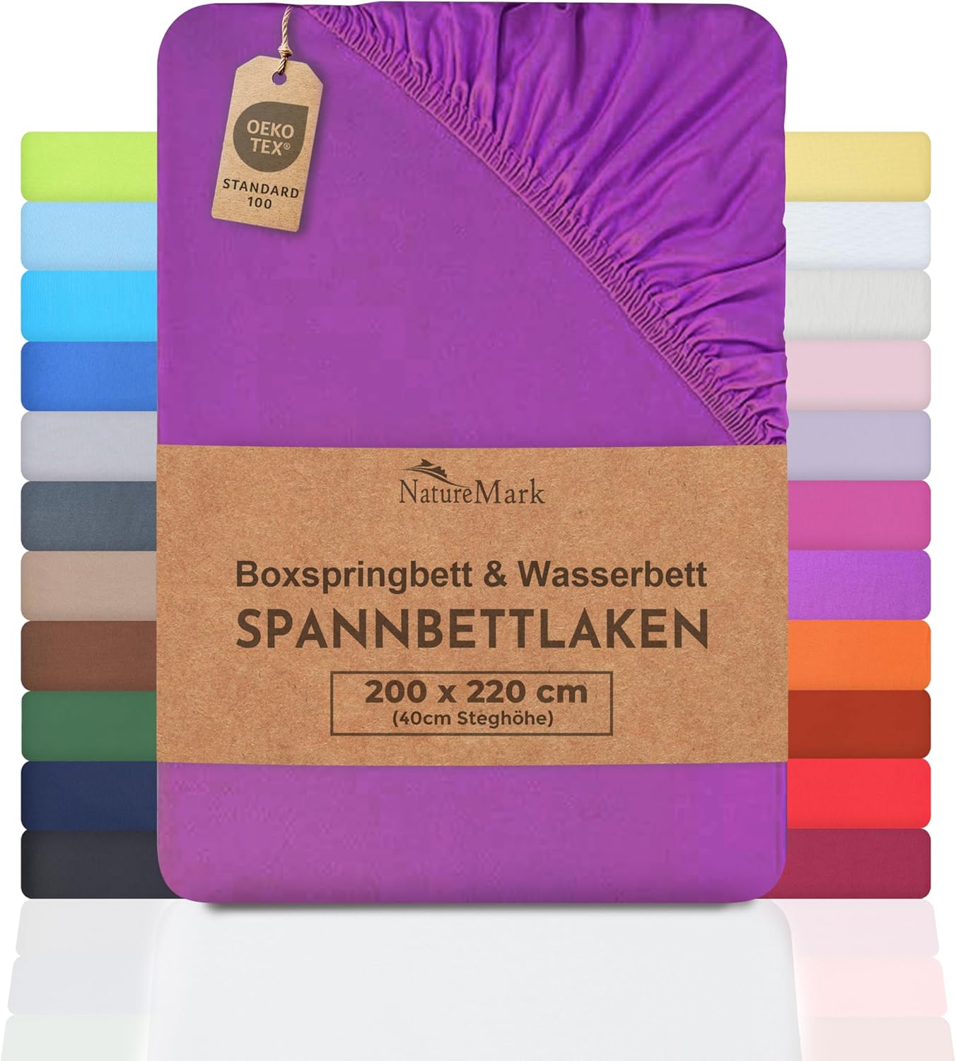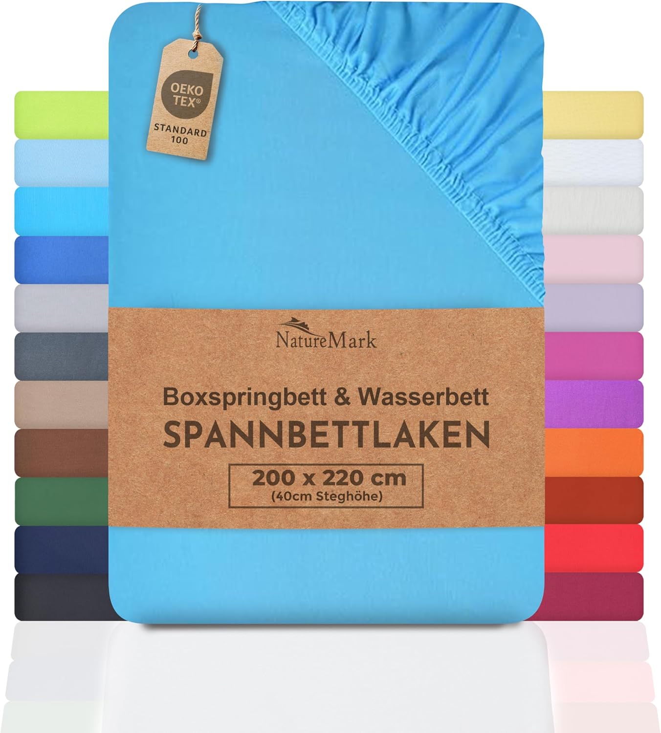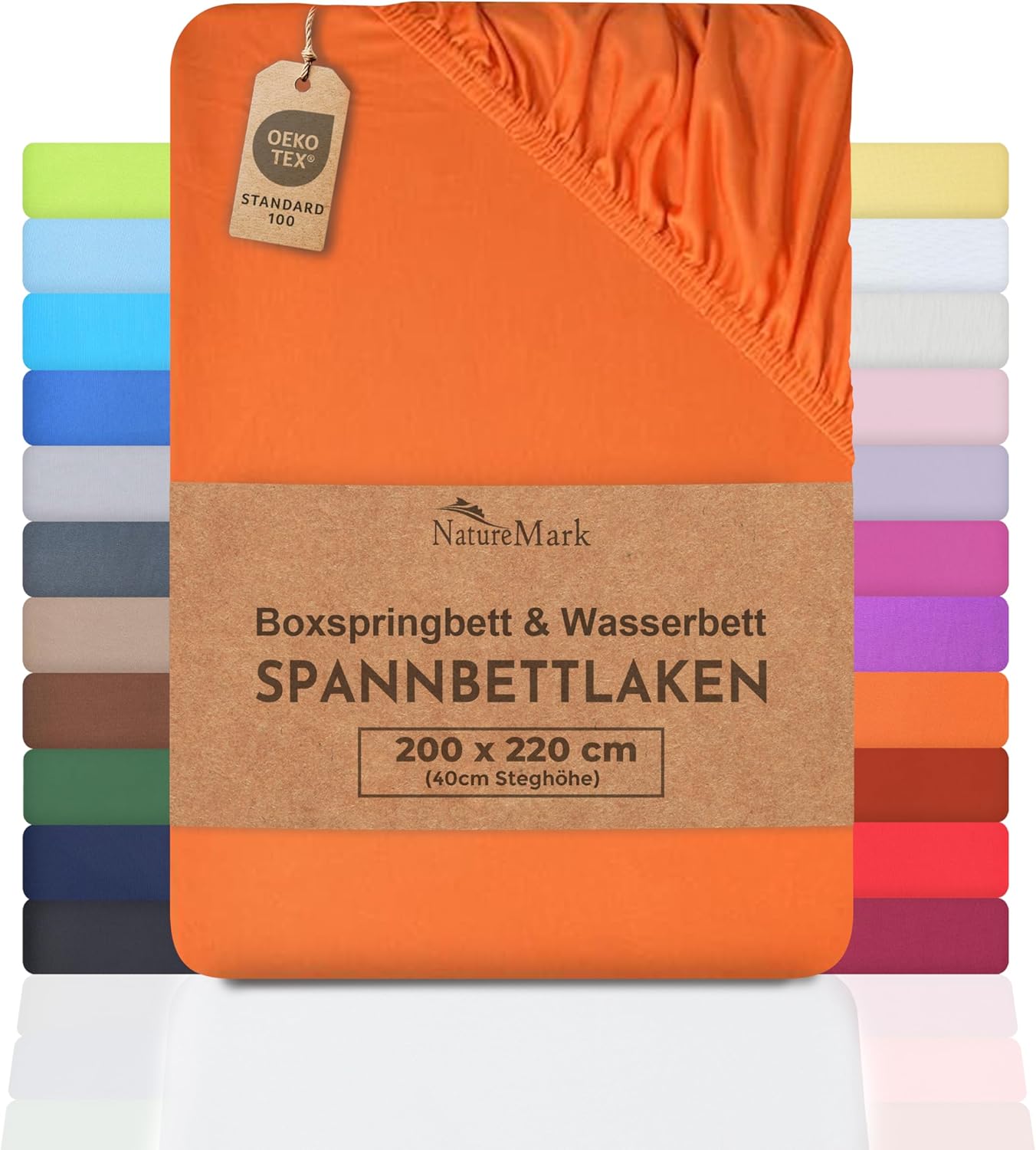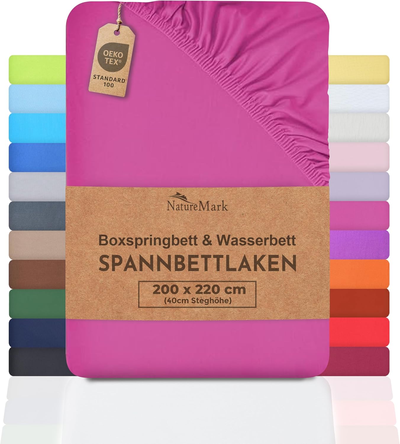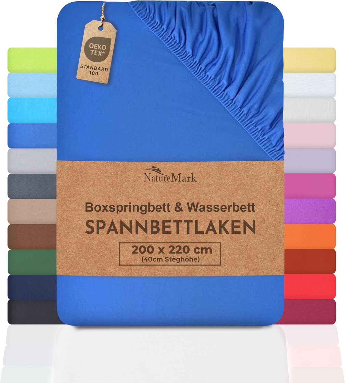 NatureMark Basic Boxspringbett & Wasserbett Spannbettlaken 200 x 220 cm – 40 cm Steghöhe – 200x220cm Spannbetttuch – 100% Baumwolle, Anthrazit/Dunkel grau
