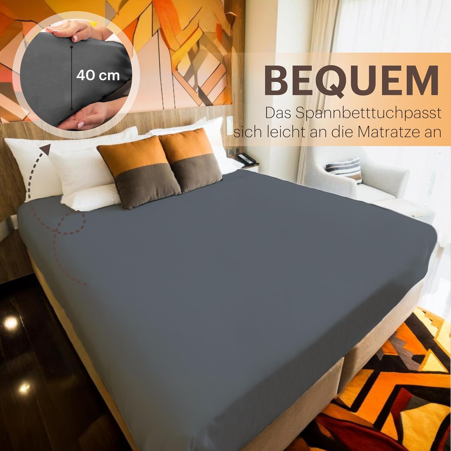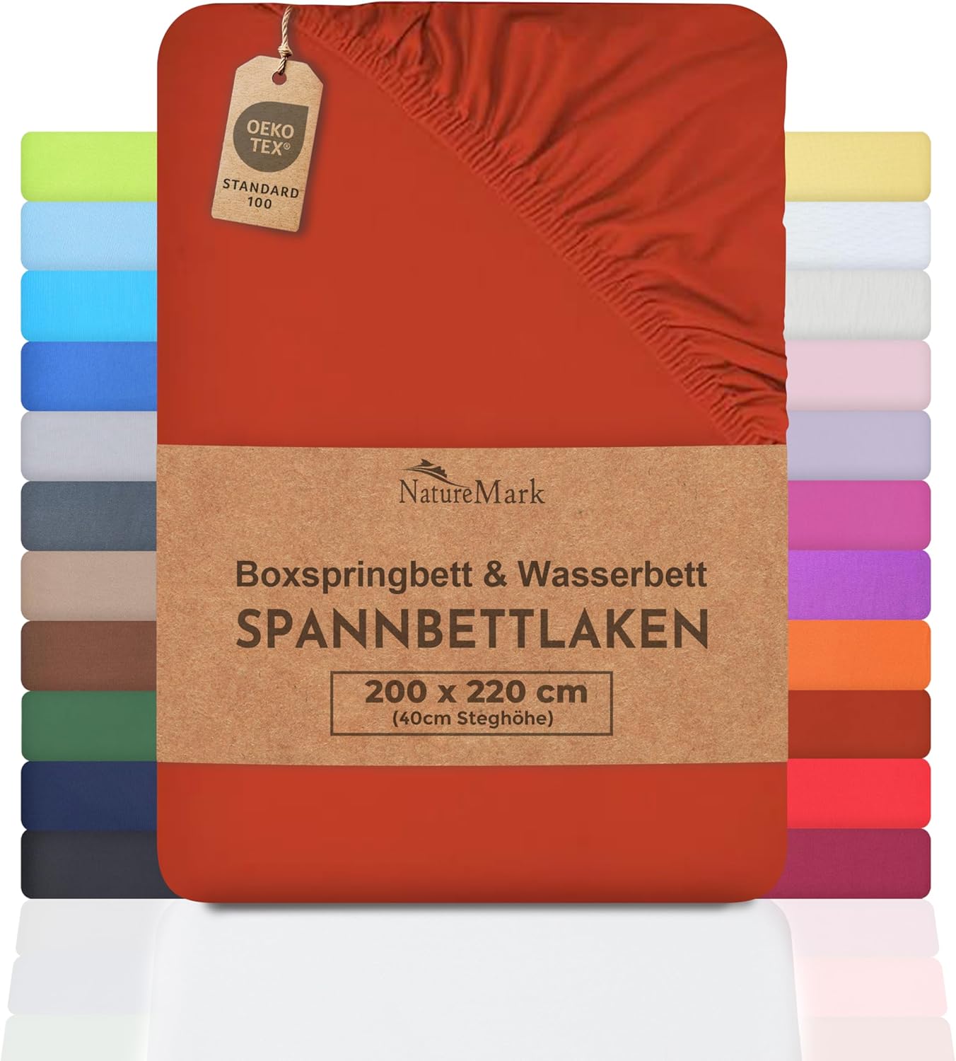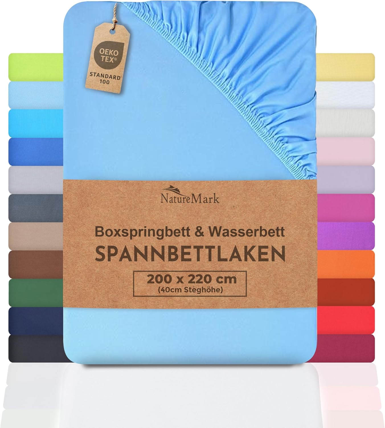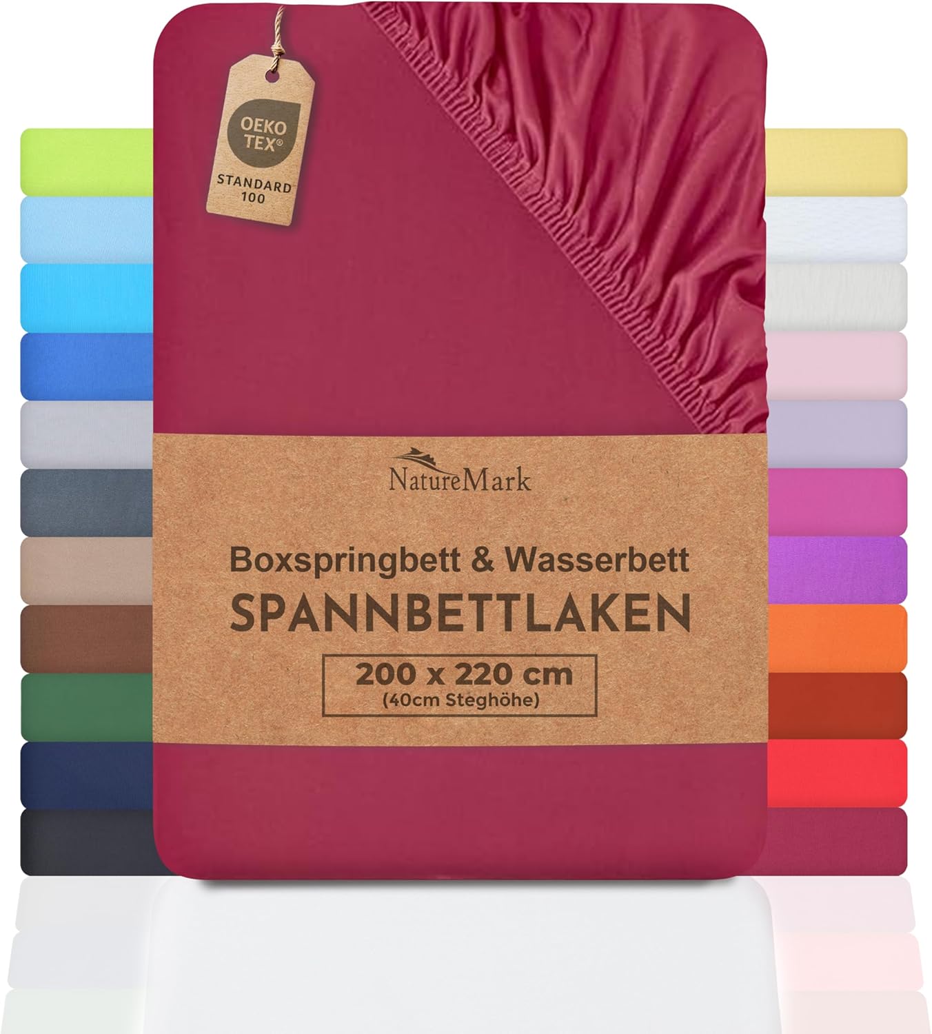 NatureMark Basic Boxspringbett & Wasserbett Spannbettlaken 200 x 220 cm – 40 cm Steghöhe – 200x220cm Spannbetttuch – 100% Baumwolle, Anthrazit/Dunkel grau