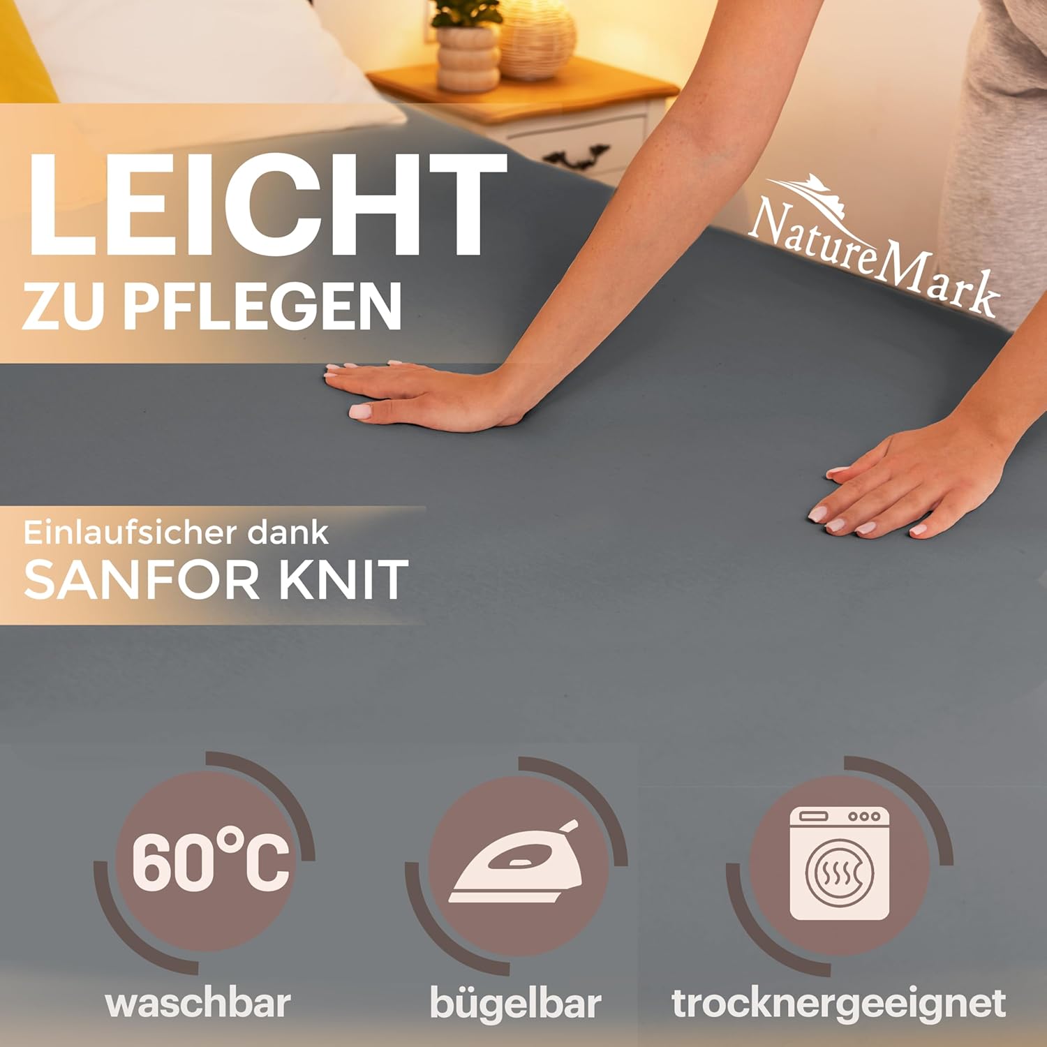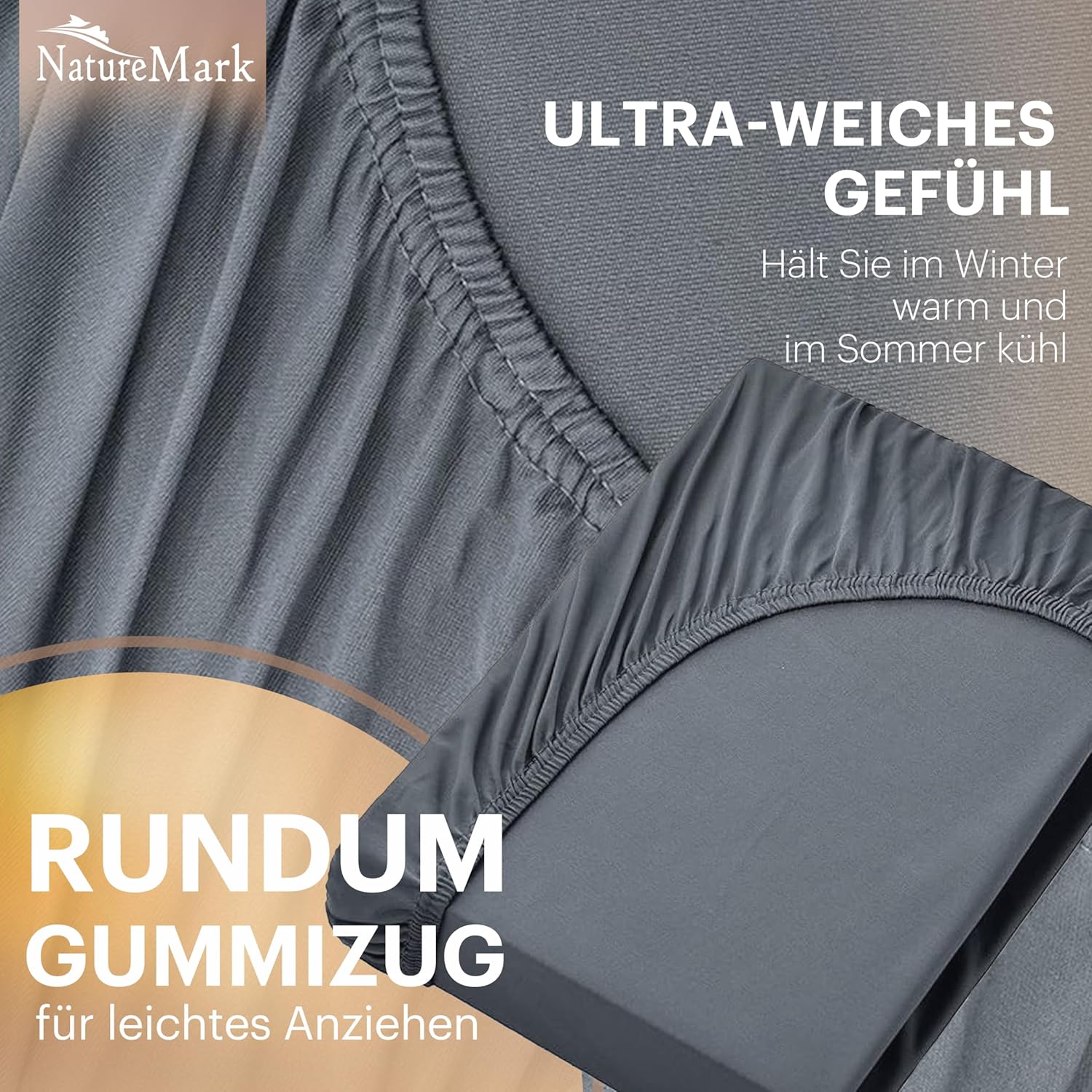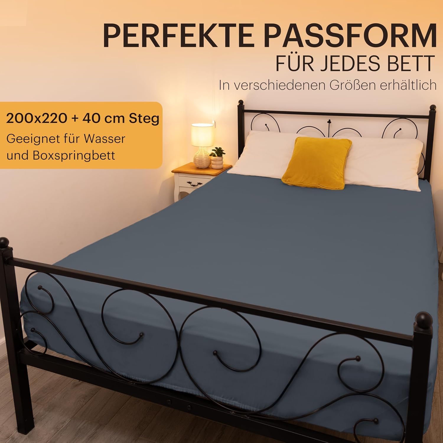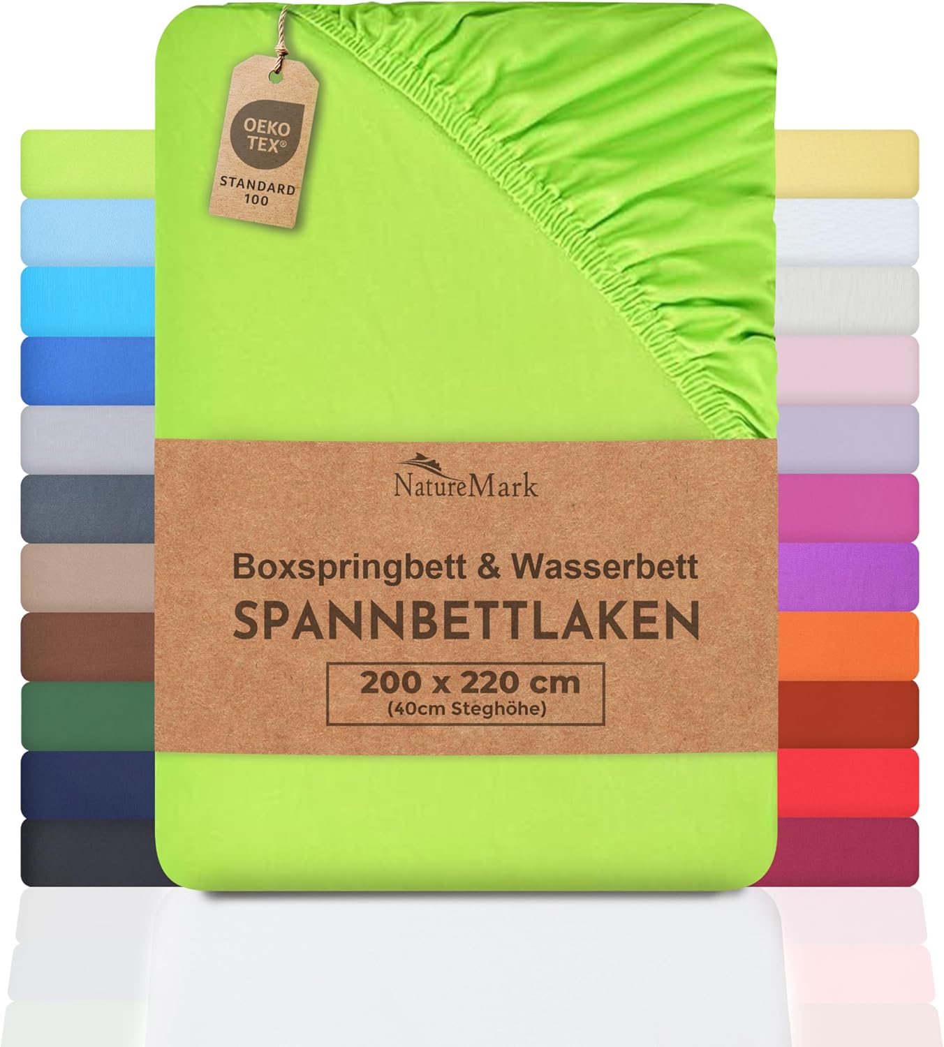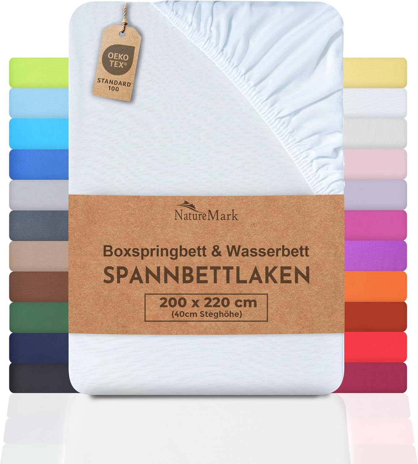 NatureMark Basic Boxspringbett & Wasserbett Spannbettlaken 200 x 220 cm – 40 cm Steghöhe – 200x220cm Spannbetttuch – 100% Baumwolle, Anthrazit/Dunkel grau