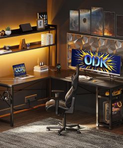 Der ODK Gaming Tisch überzeugt mit stabiler Verarbeitung, großer L-förmiger Fläche und praktischer LED-Beleuchtung; die reversible Anordnung, zwei Steckdosen und USB-Anschlüsse sowie das Regal bieten viel Komfort und Stauraum, daher ein zuverlässiger Schreibtisch für Gaming und Arbeit.