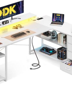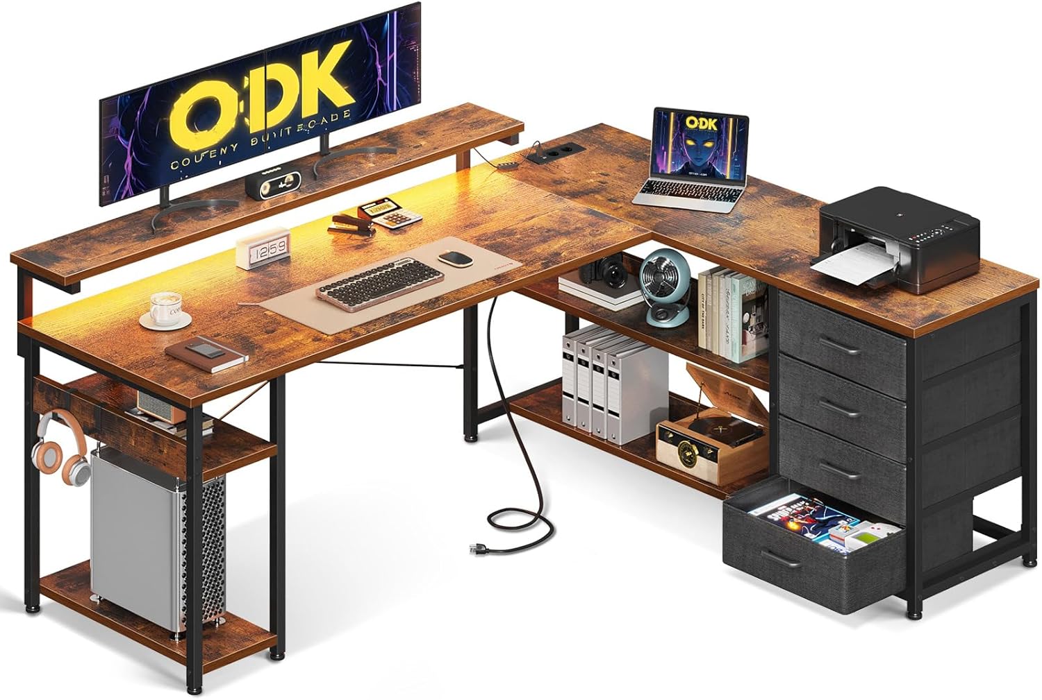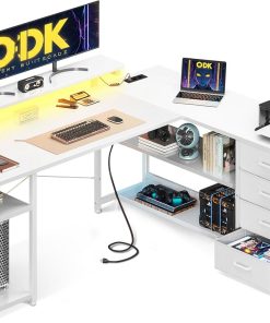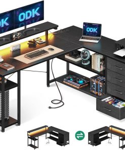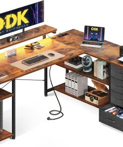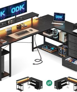Der Eckschreibtisch von ODK ist genau das, was ich fürs Home Office gebraucht habe: stabile Verarbeitung, viel Platz auf den 155×110cm, die Schubladen sind praktisch und die integrierten Steckdosen sowie USB-Anschlüsse sparen Kabelchaos. Die Montage war gut zu schaffen und das grau-eiche Finish sieht hochwertig aus. Besonders das LED-Licht macht den Arbeitsplatz angenehm. Klare Kaufempfehlung.