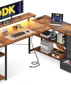 - 【USB-Ladeanschlüsse und Steckdosen】Der Schreibtisch L Form von ODK ist mit 2 Steckdosen und 2 USB-Ladeanschlüssen für Ihre elektronischen Geräte ausgestattet. Sie können Ihr Smartphone, Ihre Gaming-Ausrüstung oder Bluetooth-Geräte einfach und bequem aufladen, wenn Sie arbeiten oder Spiele spielen.