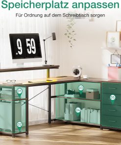 - 【Fesselnde Gaming-Atmosphäre】Dieser Gaming Schreibtisch L Form ist mit einer LED-Beleuchtung in 10 Farben und 10 Beleuchtungsmodi ausgestattet, um Gamern mehr Auswahlmöglichkeiten zu bieten. Es verfügt über eine Memory-Funktion, die dafür sorgt, dass die LED-Leuchten beim Einschalten im letzten Modus bleiben.